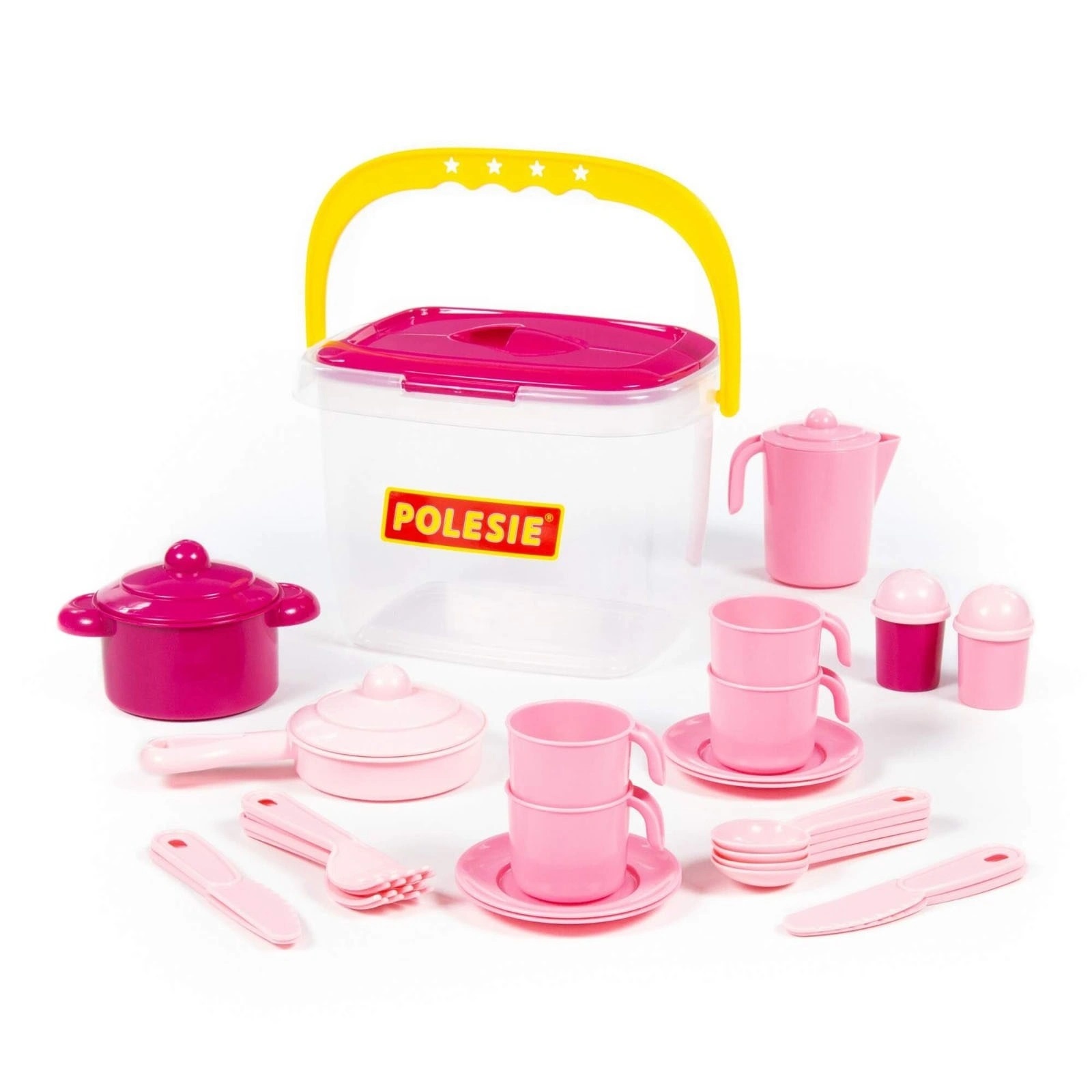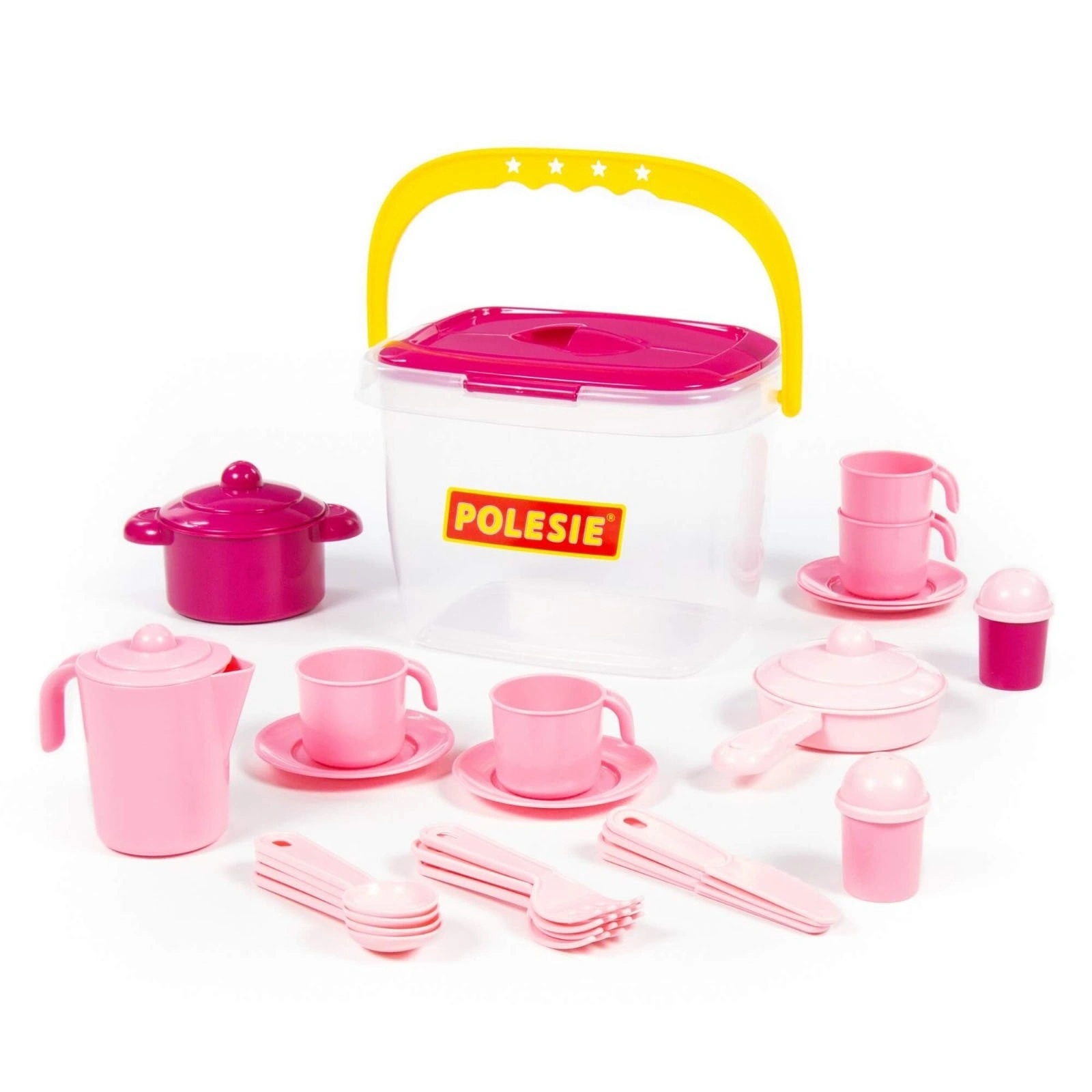 Polesie Oyuncak 56573 Kovalı 29 Parça Oyuncak Yemek Seti ile minikler misafirlerini kusursuz ağırlayacaklar.
