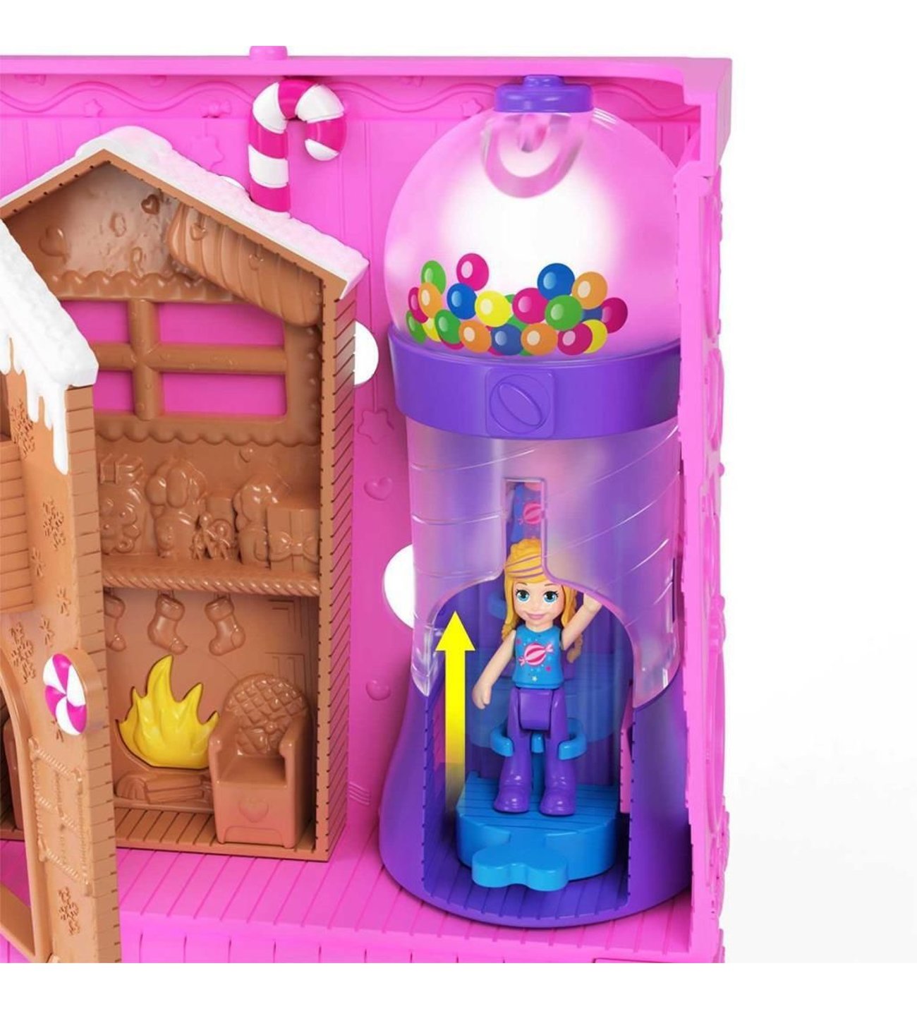 Çocuklar bu sevimli Polly Pocket Pollyville Şeker Dükkanı'nda tatlı anlar canlandırabilir. Birinci katta, Polly ve arkadaşıyla şekerleme paylaşıp satın. İkinci kattaki patlamış mısır makinesinde tek bir düğmeye basarak taptaze mısır patlatın. 3. kata çıkın ve zencefilli kurabiyeden yapılmış evin kapısını açın. Polly ve en iyi arkadaşı ile takılmak için mükemmel bir yer! Kocaman sakız makinesine uğramayı unutmayın. Kolayca katlanıp taşınabilen bu set, özellikle tatlıları seven 4 yaş ve üzeri çocuklar için güzel bir hediyedir.