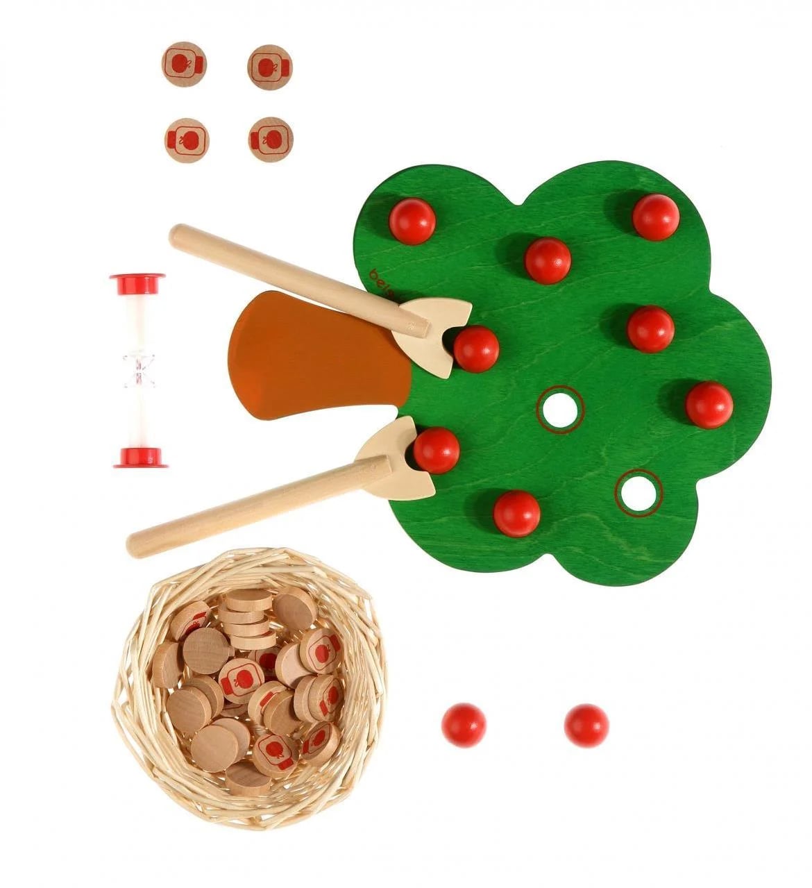 Kutu içerisinde; 1 adet oynama tahtası (elma ağacı), 2 adet meyve toplayıcı, 10 adet ahşap top (elmalar), 30 adet kazanma fişi (reçel kavanozu), 1 adet kum saati ve 1 adet sepet yer almaktadır.