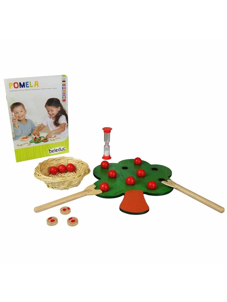 Pomela oyunu çocukların tek başlarına ya da çift kişi oynayarak ellerindeki toplama çubuğu ile ağaçtan en fazla sayıda elmayı almaya çalıştıkları eğlenceli bir oyundur.