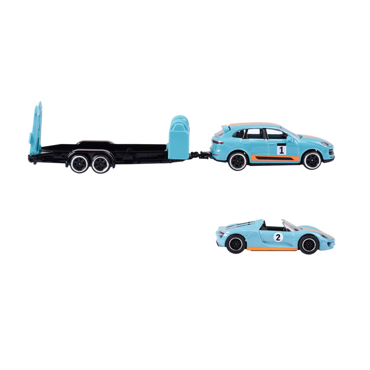 Majorette Porsche Deluxe Trailer 3’lü Set, hem koleksiyon tutkunlarına hem de çocuklara hitap eden, yüksek kaliteli döküm metal (die-cast) araç tasarımıyla öne çıkan özel bir model araba setidir.