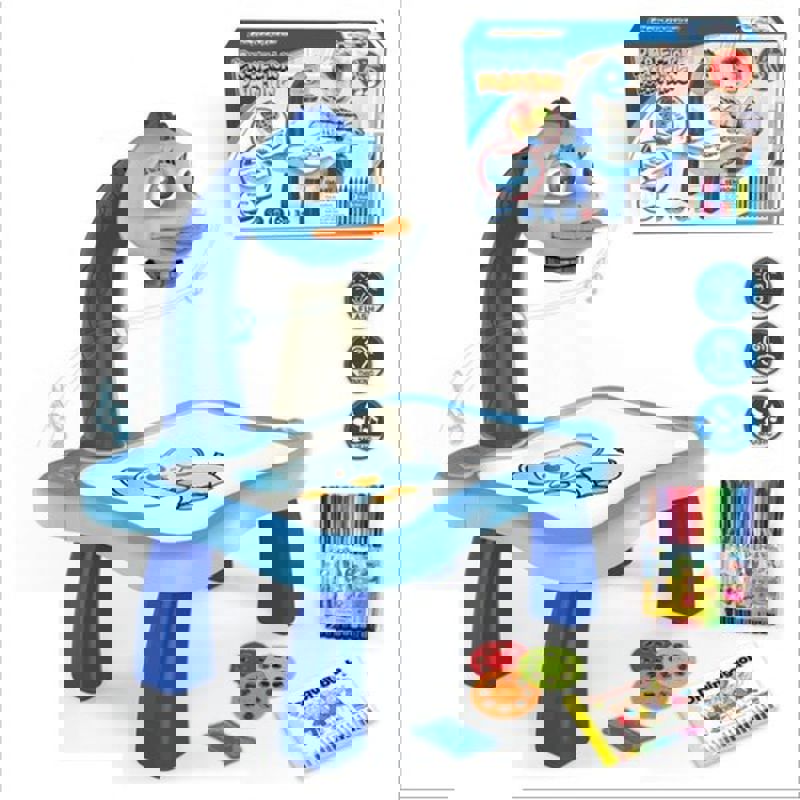 Komple set: çizici x 1, çizim defteri x 1, çizim kalemi x 12, CD x 3, silinebilir tahta x 1 dahil.