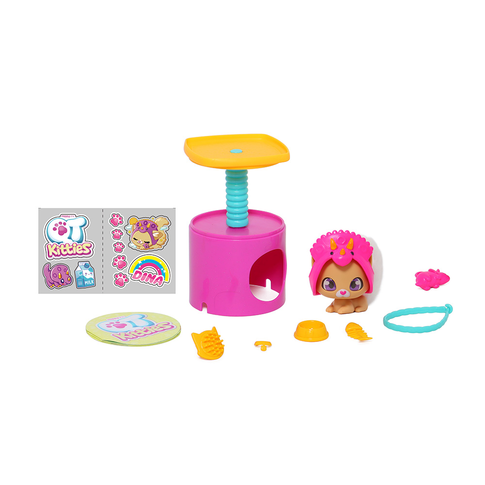 Ambalajı, diğer QT Kittie setlerine bağlanabilen ve oyun deneyimine ekstra bir heyecan katan sevimli bir kedi evine dönüştürülebilir.