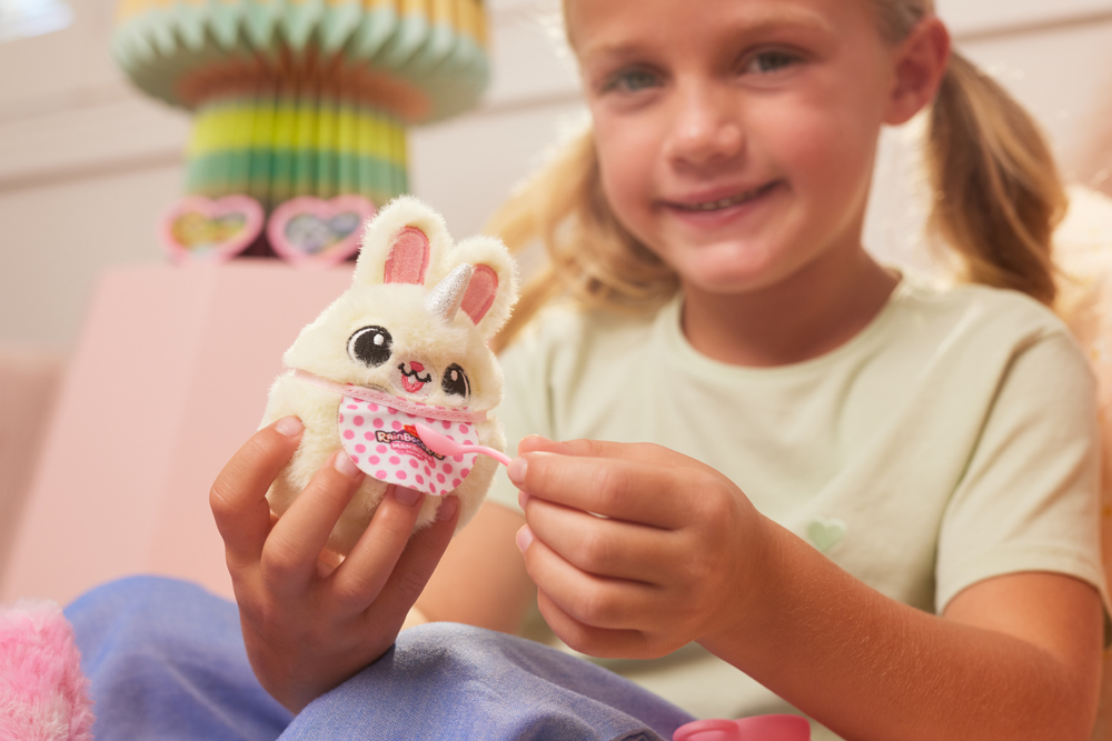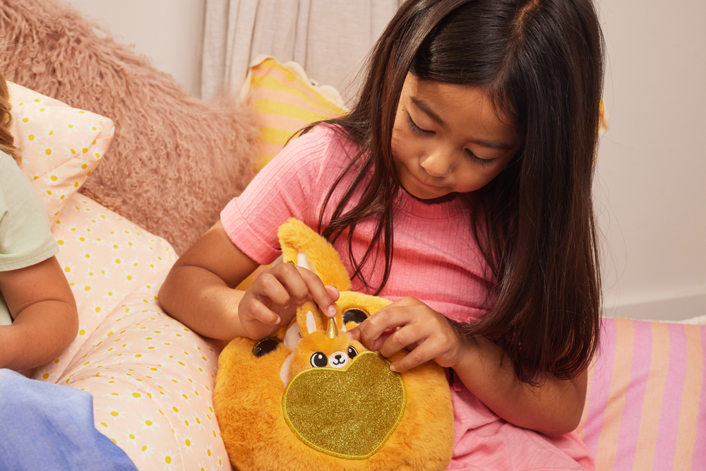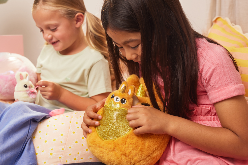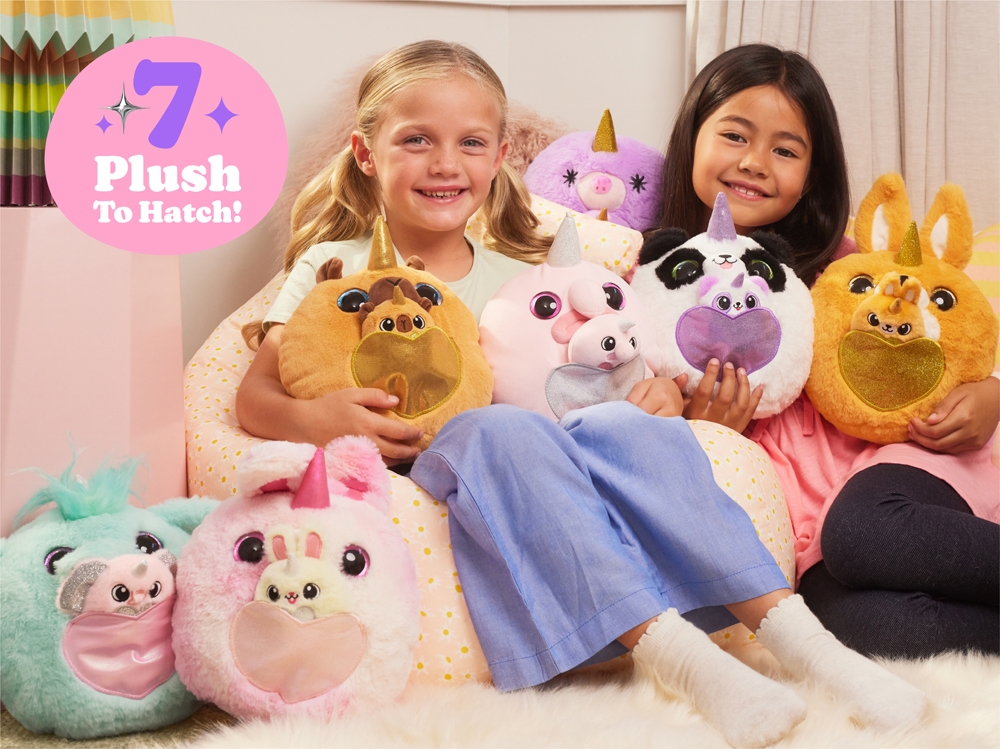 Renkli yumurta açılarak içerisindeki Mamacorn pelüş ve 30’dan fazla sürpriz keşfediliyor. Yedi farklı Mamacorn asortisinden biri ve yanında gizemli bir bebek pelüş yer alıyor. Hangi bebeğin çıkacağı ise tamamen sürpriz!