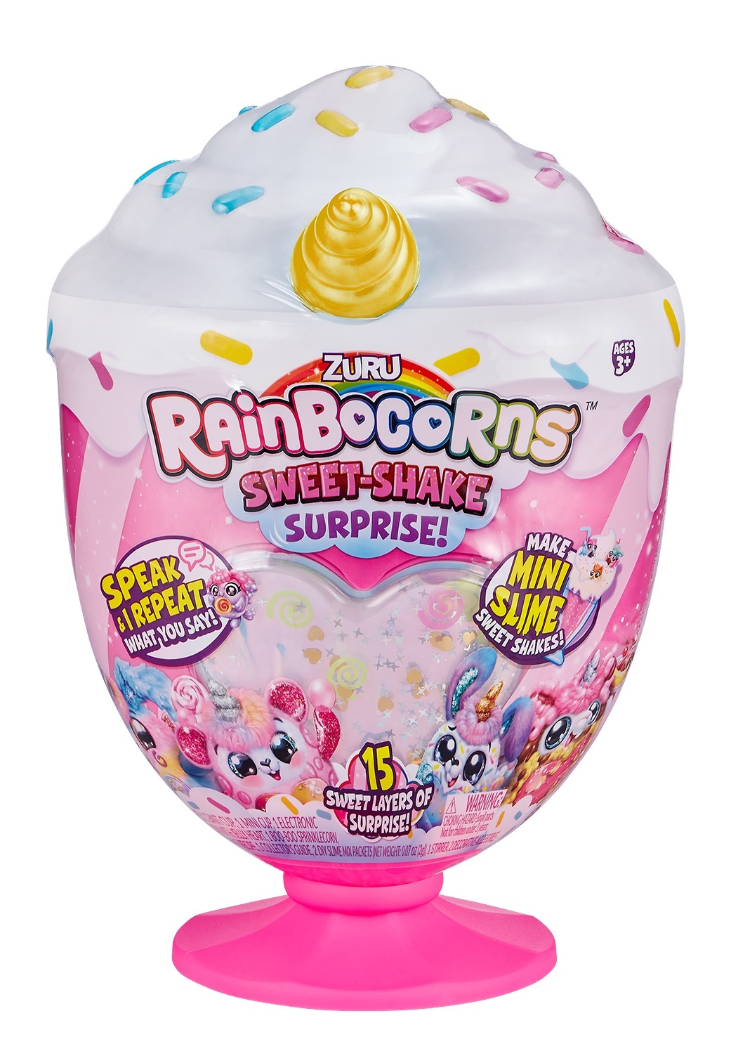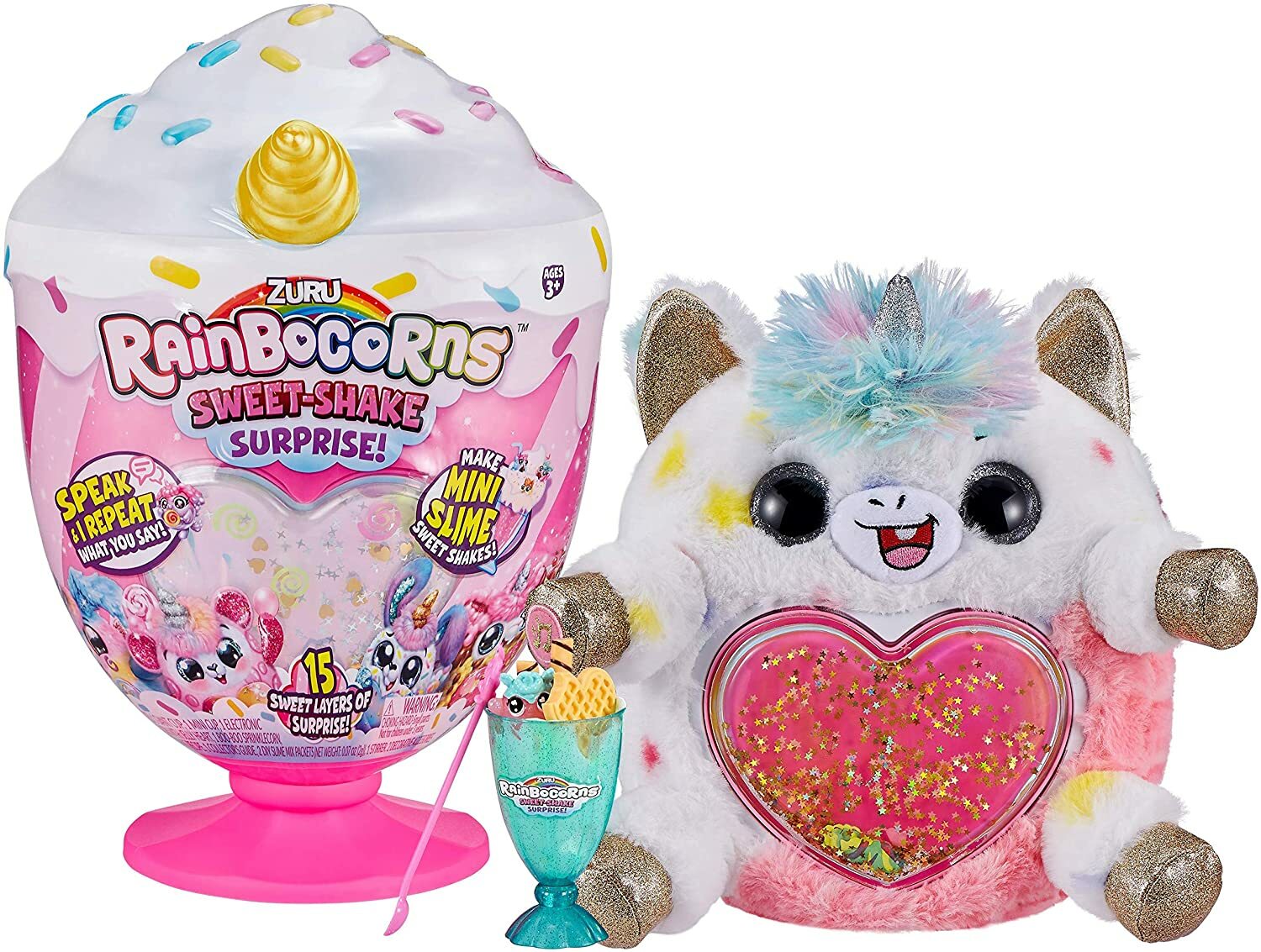 Paket içerisinde 1 mini Bardak, 1 sesli Rainbocorn pelüş karakter, 1 Boo- Boocorn, 1 Slime Hazırlama Kartı, 1 Koleksiyoncu Kılavuzu, 2 DIY Slime Paketi,