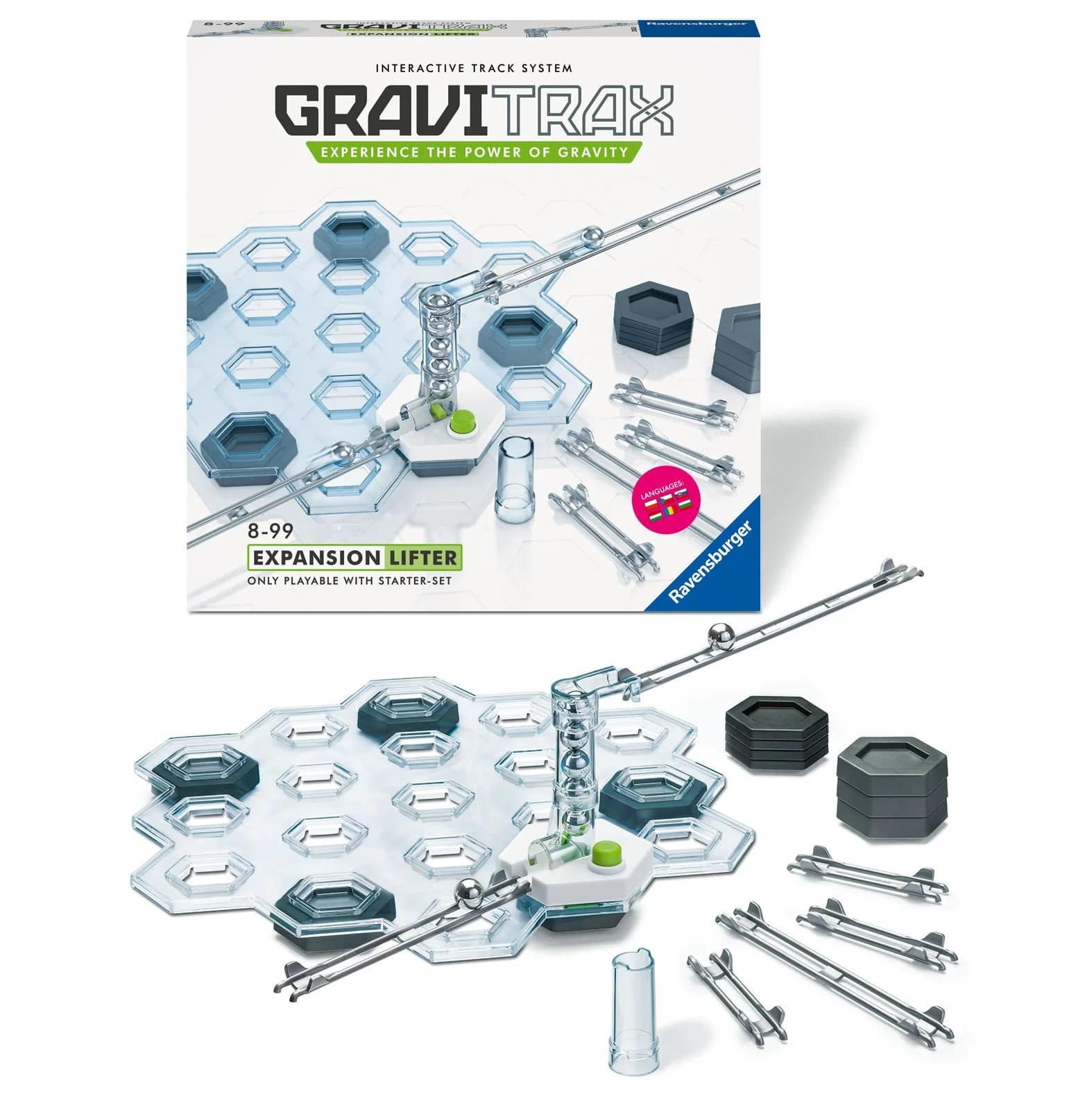 Daha fazla aksiyon ve heyecanı daha yüksek bir düzlemde deneyimlemek için Kaldıraç'ı GraviTrax Başlangıç Setinle birleştir.
