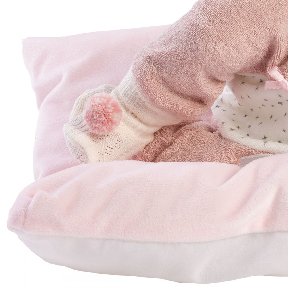 Sevimli kıyafeti ile satışa sunulan bebeğin bacak ve kulpları hareketlidir.