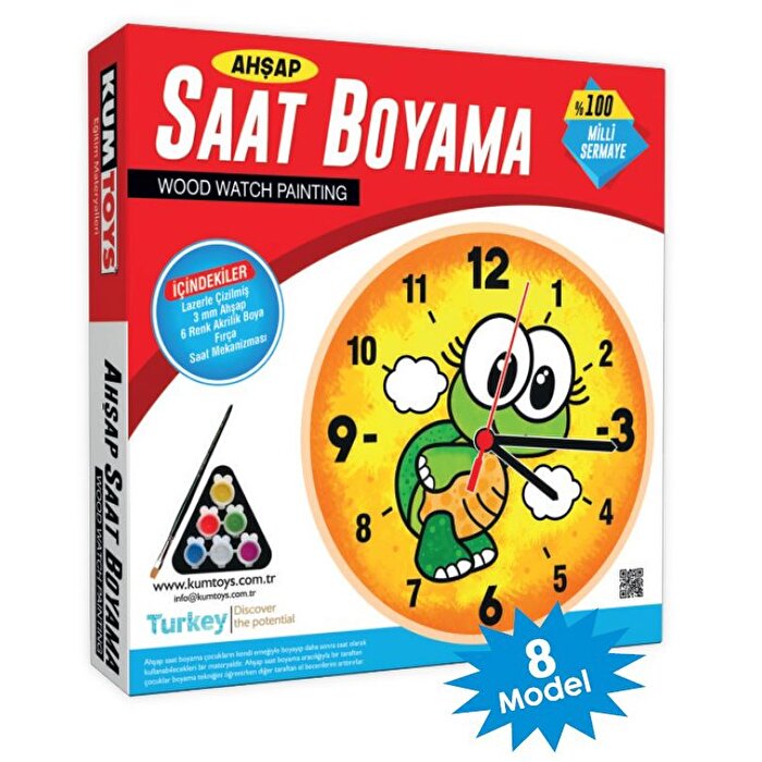 Kutu İçeriği: Ahşap Saat, 6 renk akrilik boya, Fırça