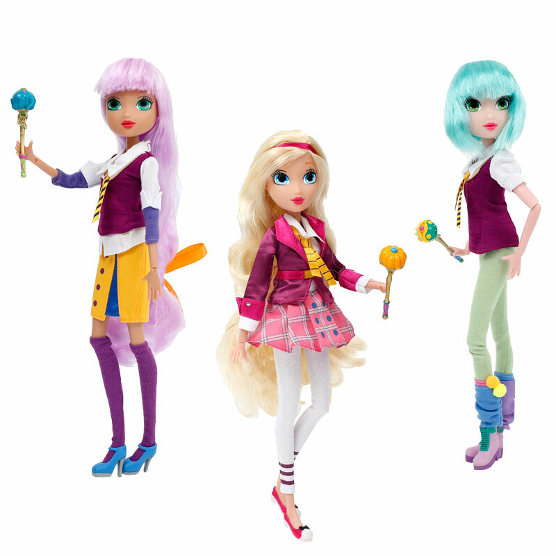 Ana karakterler Rose, Astoria ve Joy çizgi filmde giydikleri Regal Akademi üniformalarıyla birlikte geliyor.