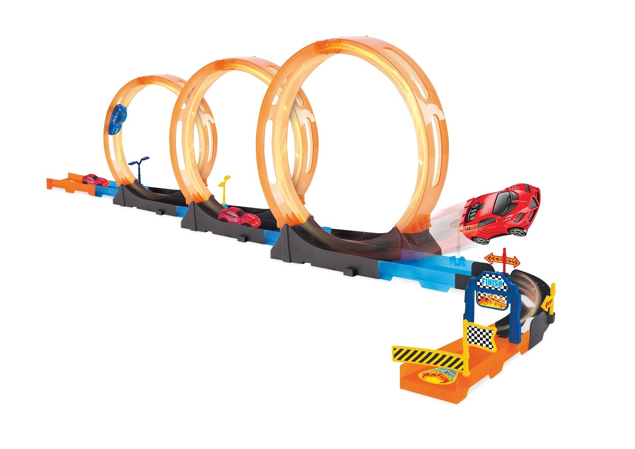 Yarış seti, 3 adet takla rampasına sahiptir.
