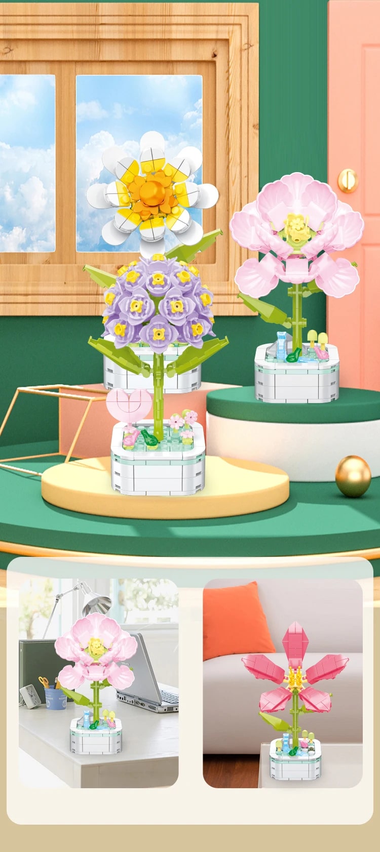 Parçaları birleştirmek stres atmanızı ve rahatlamanızı sağlayacak. Harika bir şey ortaya çıkarmanız da cabası! Bütün çiçekleri toplayabilir, onları birbiriyle eşleştirebilir ve onlardan farklı aranjmanlar oluşturabilirsiniz. İster evinizin en sevdiğiniz köşesine isterseniz ofisteki masanıza koyabilir yeni bir dekor oluşturabilirsiniz. Sevdikleriniz için alabilir böylece doğum günlerinde, yıl dönümlerinde ve özel günlerde bir hediye aramakla uğraşmazsınız.