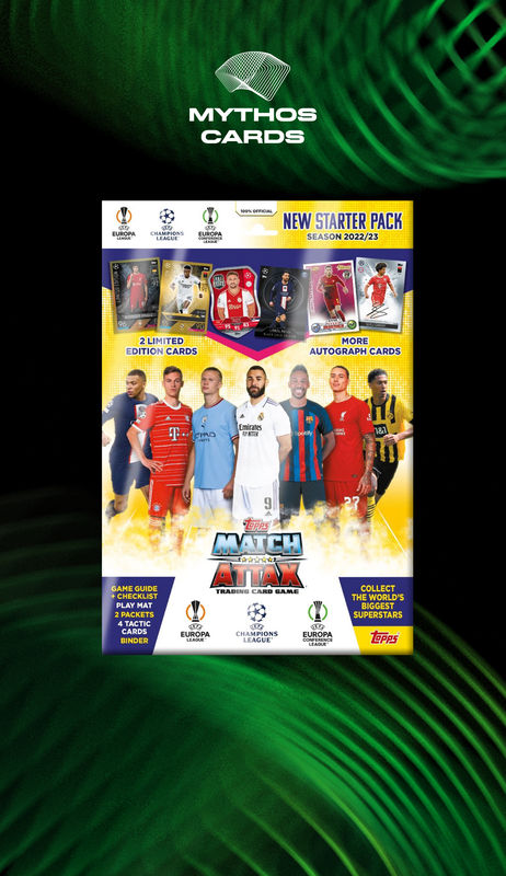 Topps UCL Match Attax Başlangıç Paketi, UEFA Şampiyonlar Ligi'ni temel alan özel bir koleksiyon serisidir. Bu özel seri Mythos Cards aracılığıyla şimdi Türkiye’de!