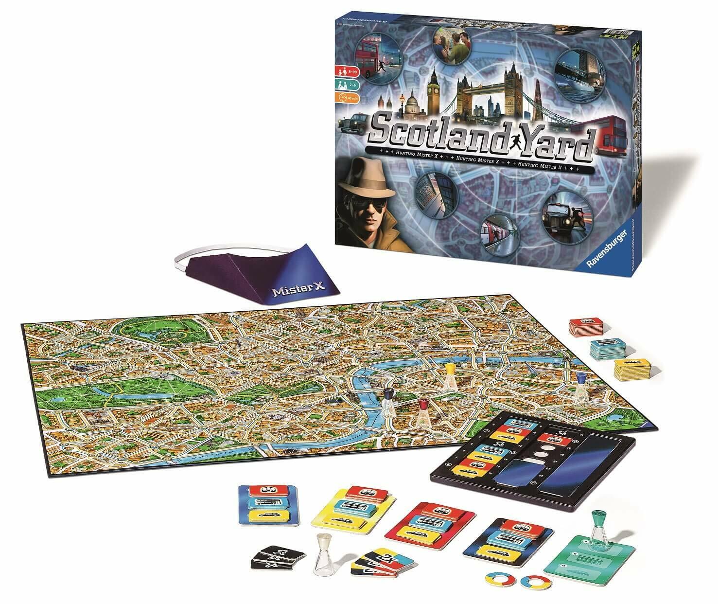 Kutu içeriği: Oyun tahtası, 29 başlangıç ulaşım bileti, farklı ulaşım araçları için 130 bilet ve Bay X için seyahat günlüğü yer almaktadır.