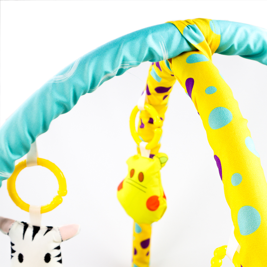 Halılar üzerinde bulunan aksesuar oyuncaklar, 0 yaştan 5 yaşa kadar kullanılabilir.