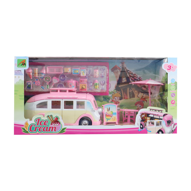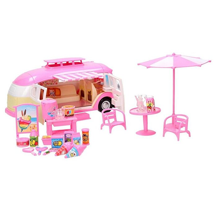 Çocuklarınızın sandalye ve masa gibi aksesuarlarla tamamlanmış bir rol yapma oyunu oynayabileceği küçük bir dondurma minibüsüdür.