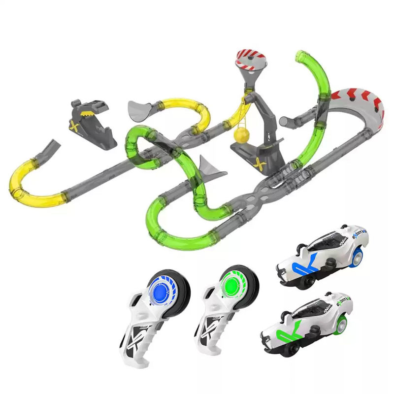 Exost Loop seti, kızılötesi uzaktan kumandalı bir yarış arabası ve sınırsız bir şekilde inşa etmenize ve yarışmanıza izin veren 31 adet farklı şekillerdeki tüplerden oluşur.