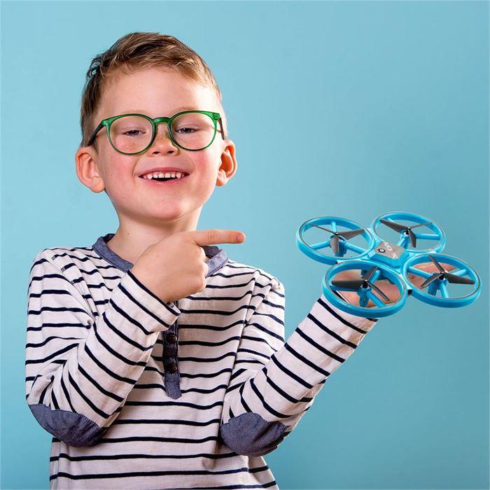 Flashing Drone, bileğinizden kontrol etmenizi sağlayan bir hareket sensörü olan klasik uzaktan kumandası veya saat uzaktan kumandasıyla kontrol edilebilir.