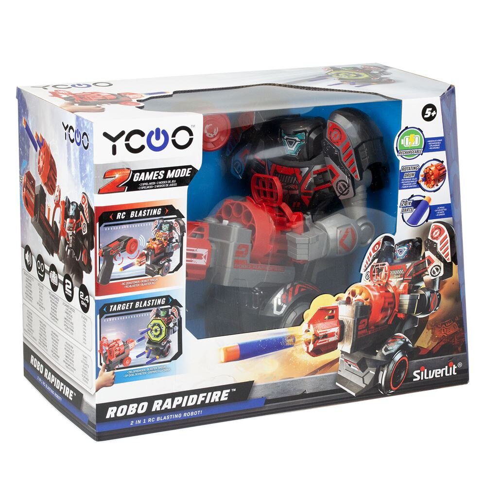 Silverlit Robo Rapidfire Uzaktan Kumandalı Robot, atış fonksiyonuna sahip 2'si 1 arada uzaktan kumandalı bir robottur.