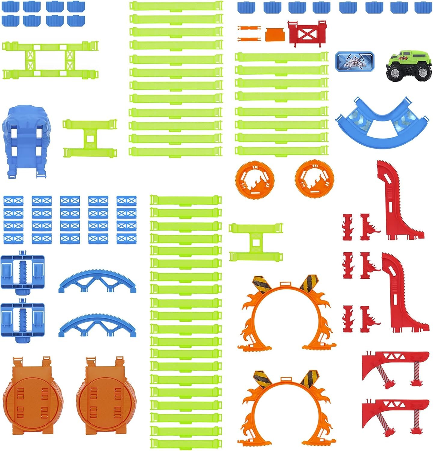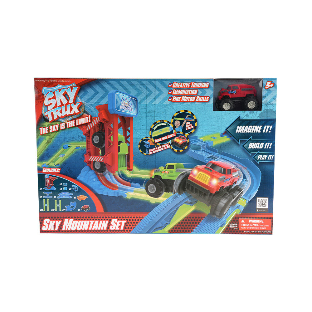 Sky Trux Sky Dağ Seti sayesinde artık en iyi sürücü olabilir ve kamyonlarınız için hayallerinizdeki pisti yaratmak için 45 parçayı kullanabilirsiniz.