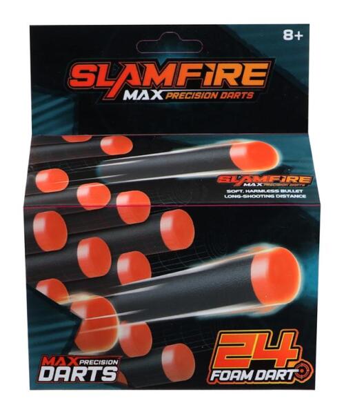 SlamFire Max Precision Foam Darts, yüksek hassasiyet ve uzun menzil sunan yapısıyla dart tabancası oyunlarını daha eğlenceli hâle getirir.