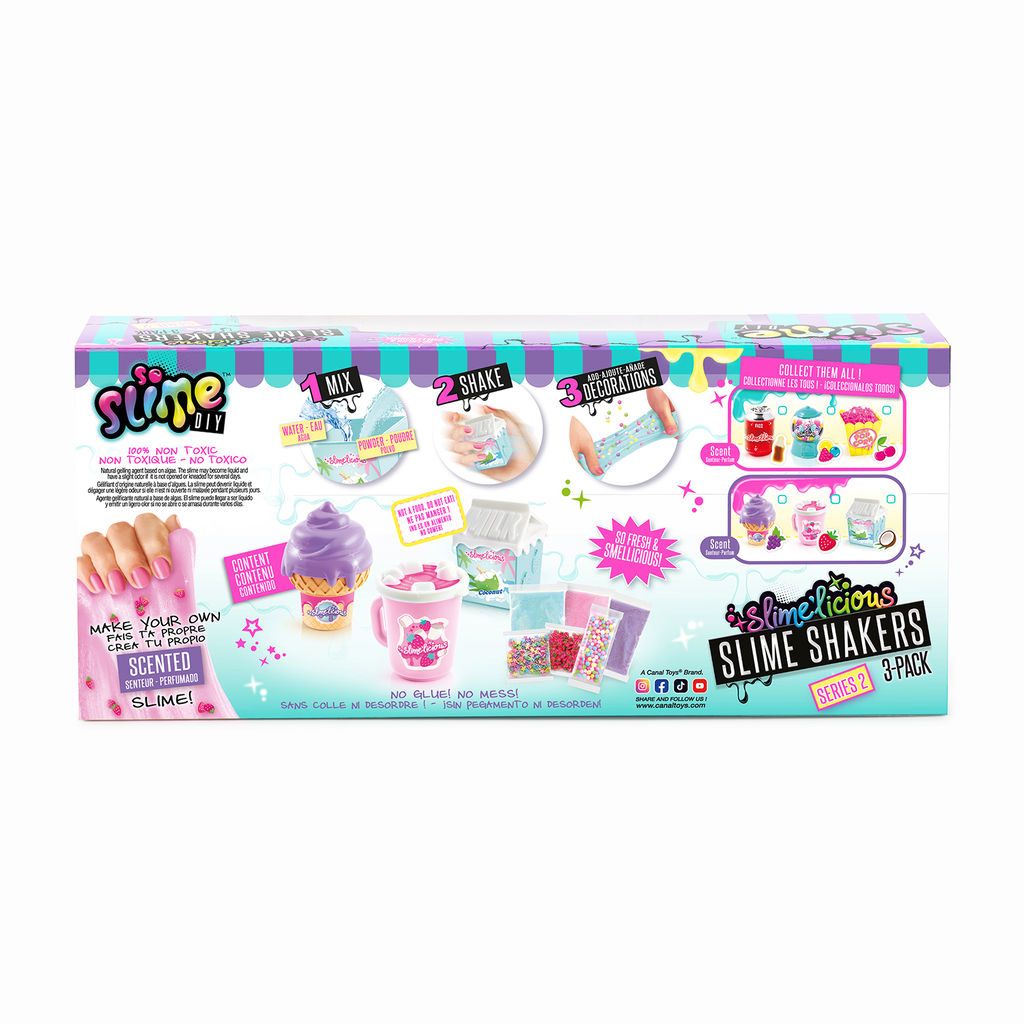 Paket içerisinde 3 adet kokulu slime tozu paketi, 3 adet süsleme
