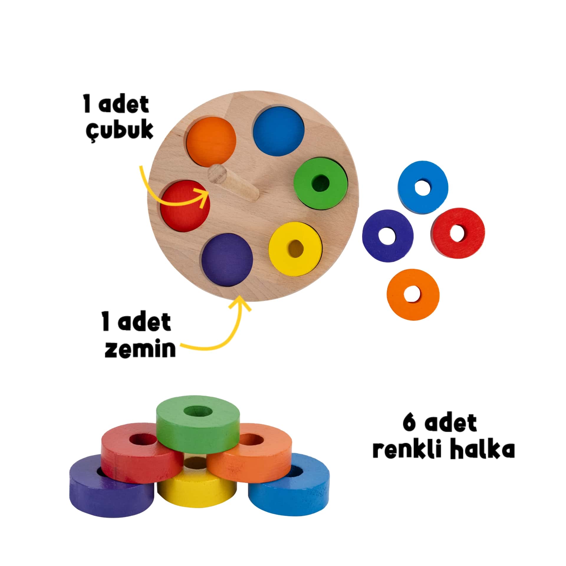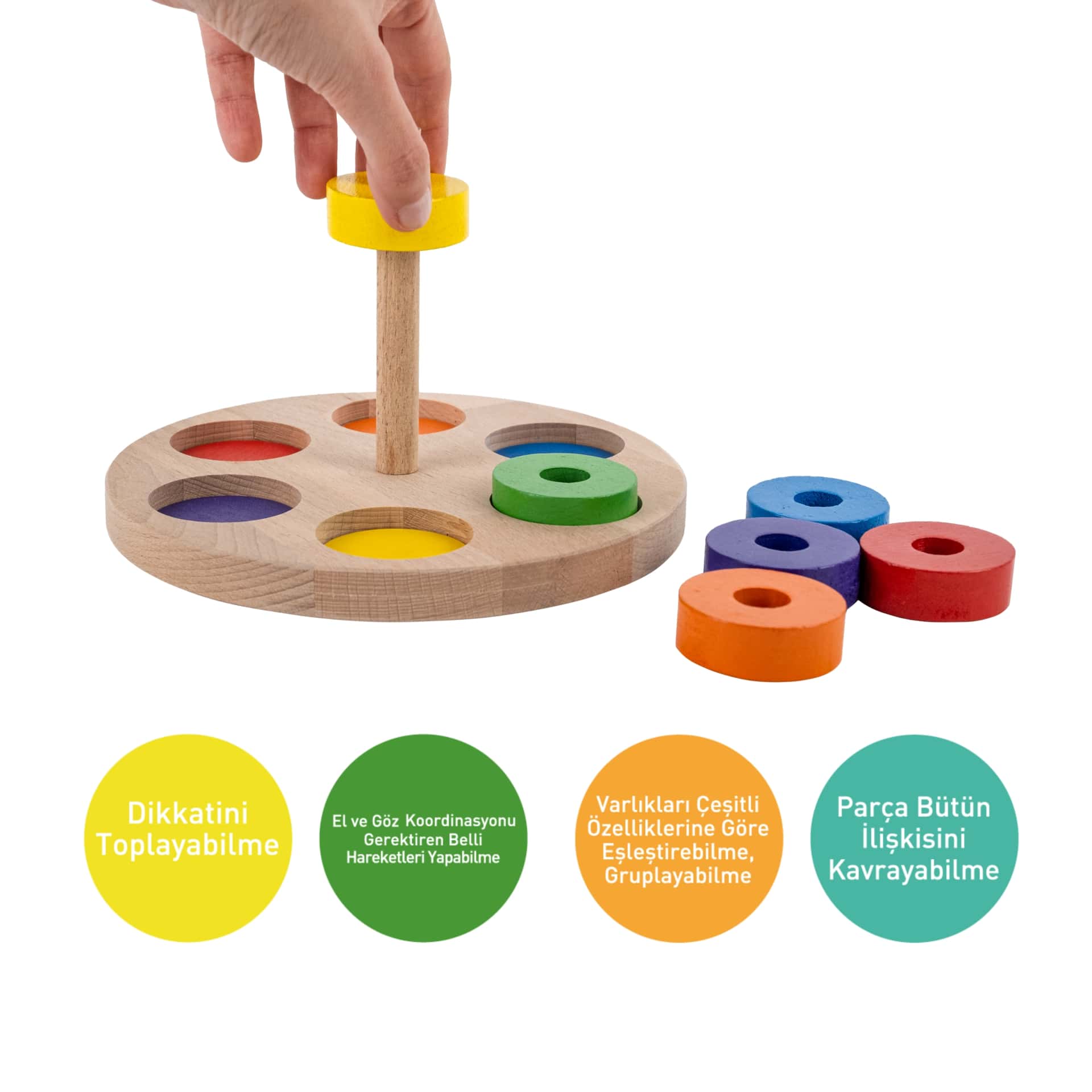 Bee Smart Ahşap Halkalar ve Renkler eğitici oyuncakları,