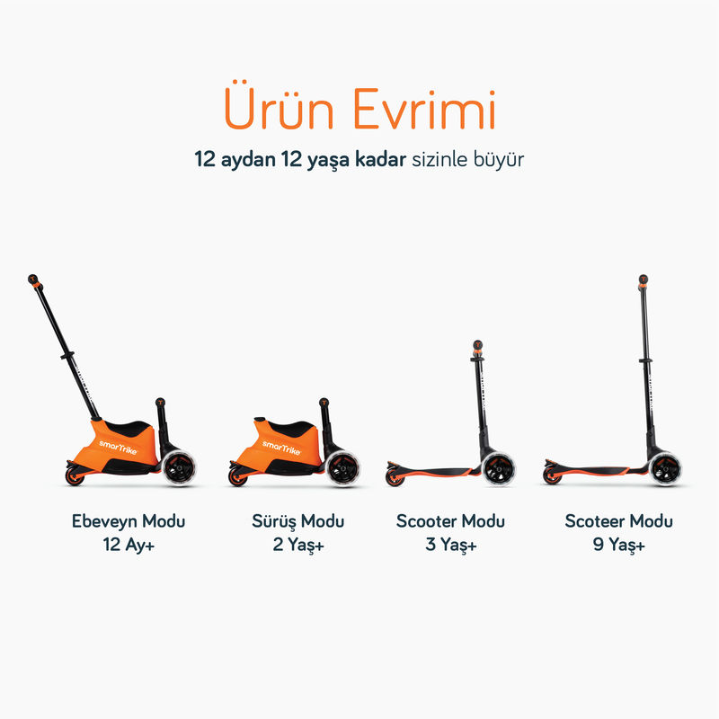 Hem ride on (1-3 Yaş), hem scooter (3-12 Yaş); Xtend ile