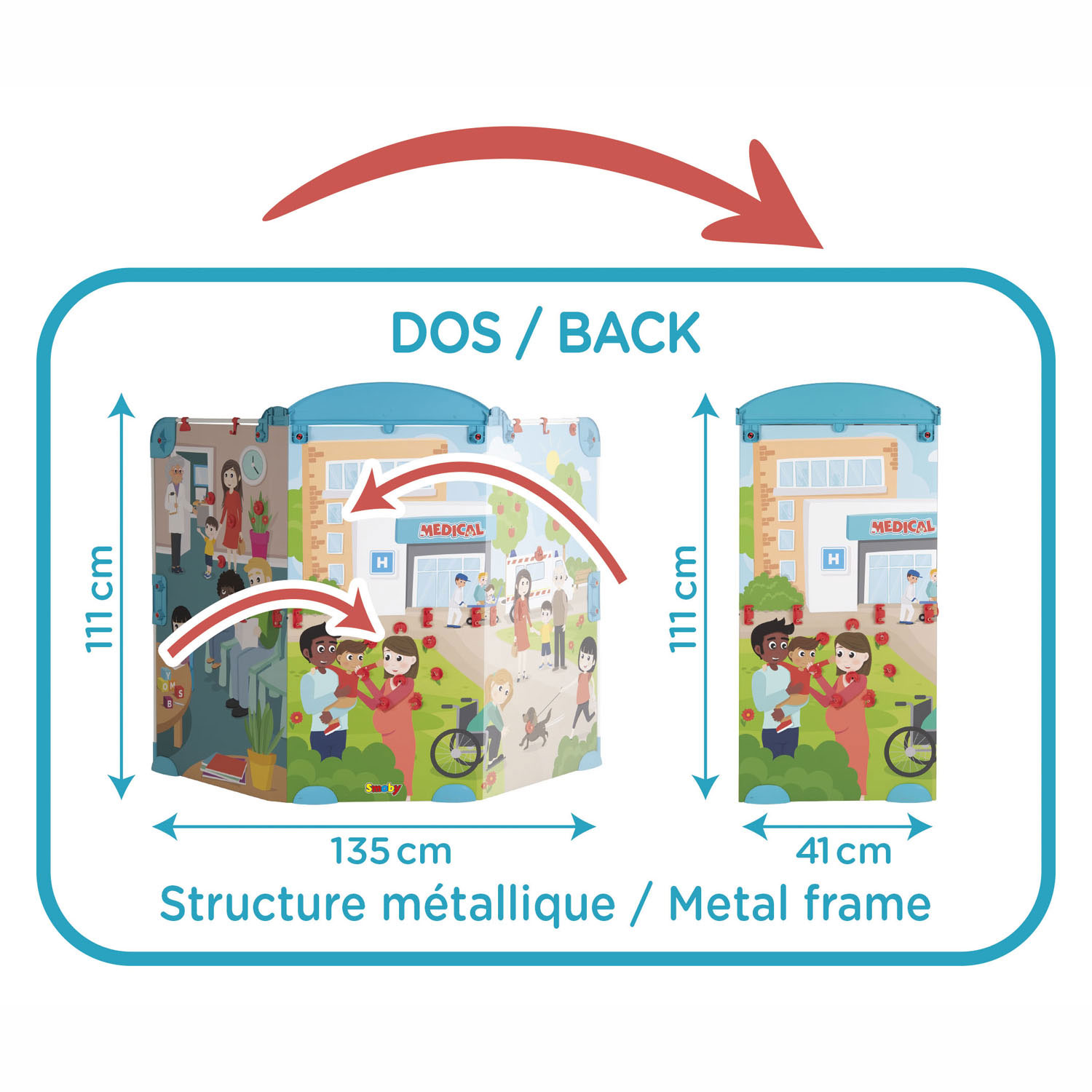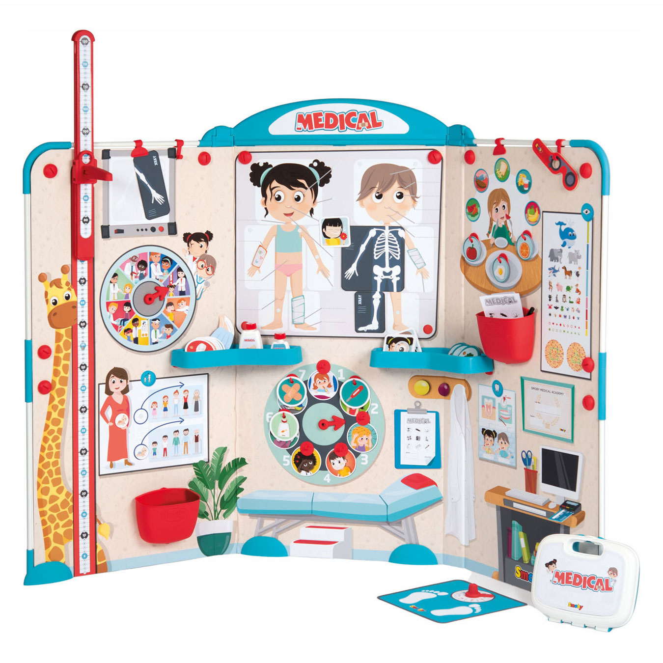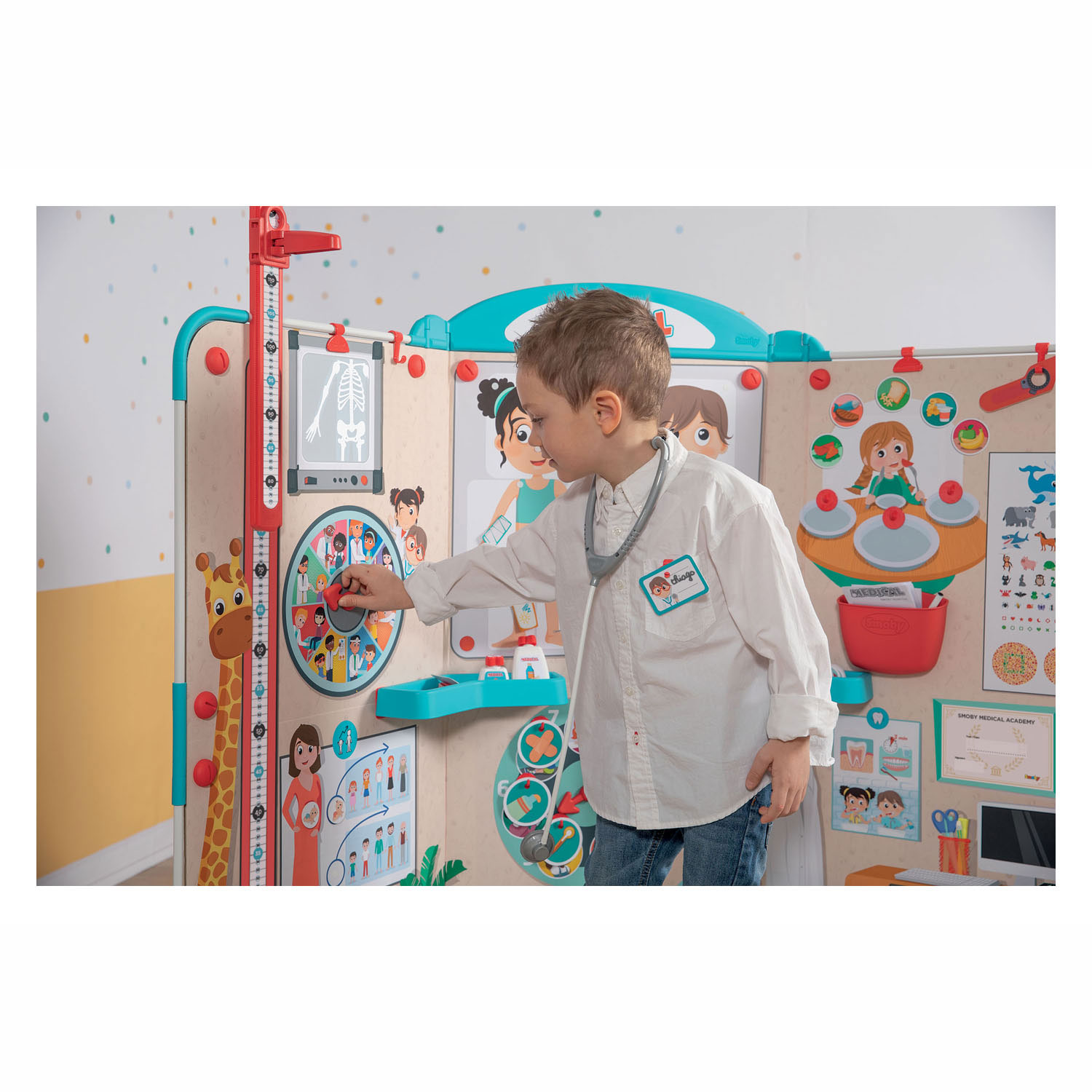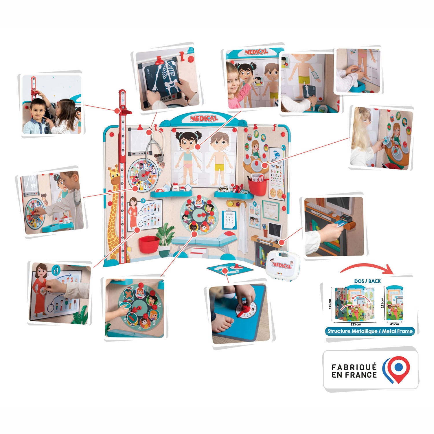 Radyoloji köşesi, vücut bölümlerinin tanınması, beslenme bölümü, optometrik tartı, ağrıyı gösteren işaretçili tahta, ortalamalı büyüme ölçeği, 1,20 metreye kadar ölçüm çubuğu, manken tartısı, doktorla konsültasyon prosedürünü açıklayan işaretli tahta ve çok daha fazlası konusunda kapsamlı deneyim!