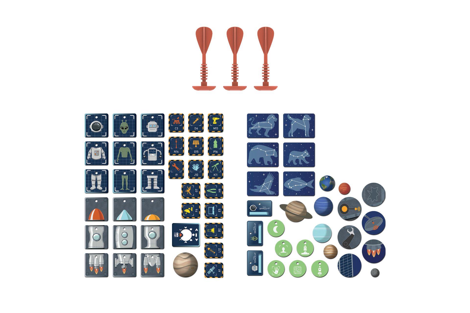Sete toplam 60'tan fazla aksesuar dahildir: gezegenler, uzay, uzay çöpü, Velcro okları, takımyıldızlar, rozetler ve çok daha fazlası.