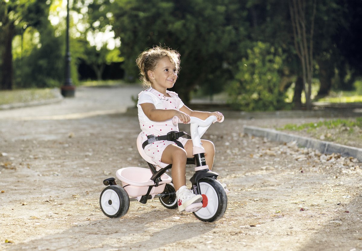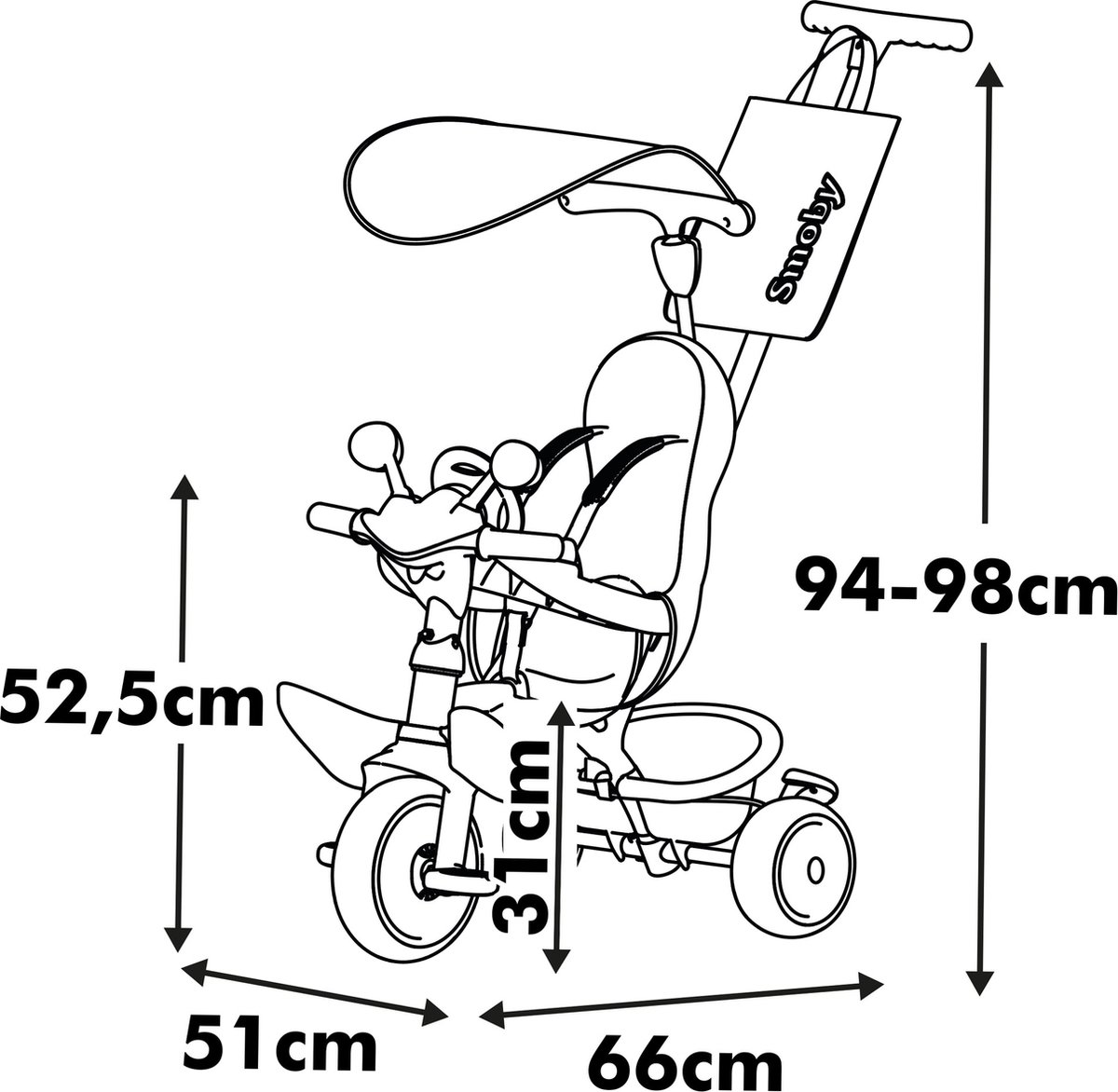 Ebeveynlerin konforu için, sezgisel olarak yönlendirilen ebeveyn kontrollü gidon 3 yükseklik seviyesine (maks. 98 cm) ayarlanabilir ve bu da üç tekerlekli bisikleti yönlendirmeyi çok kolaylaştırır. Ebeveynler ayrıca, yürüyüş için ihtiyaç duyulan tüm küçük eşyaları taşımak için kullanışlı olan erişilebilir, çıkarılabilir çantayı da takdir edeceklerdir.