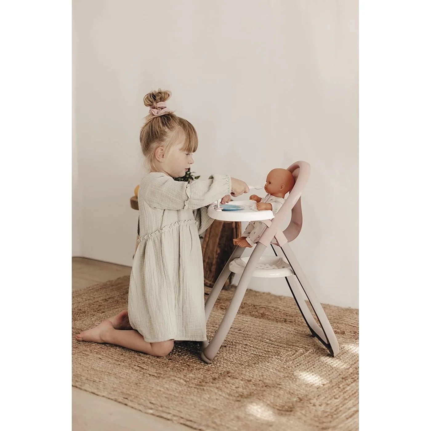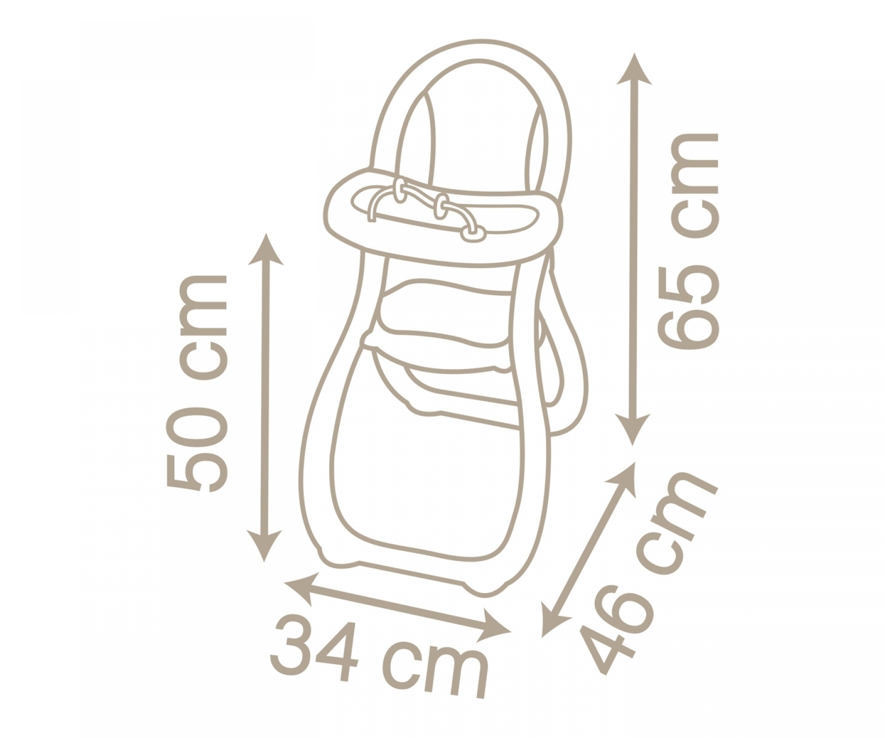 Yüksek kaliteli plastik ve metalden yapılmış, güçlü çerçeveli, hafif ve konforlu oyuncak mama sandalyesidir.