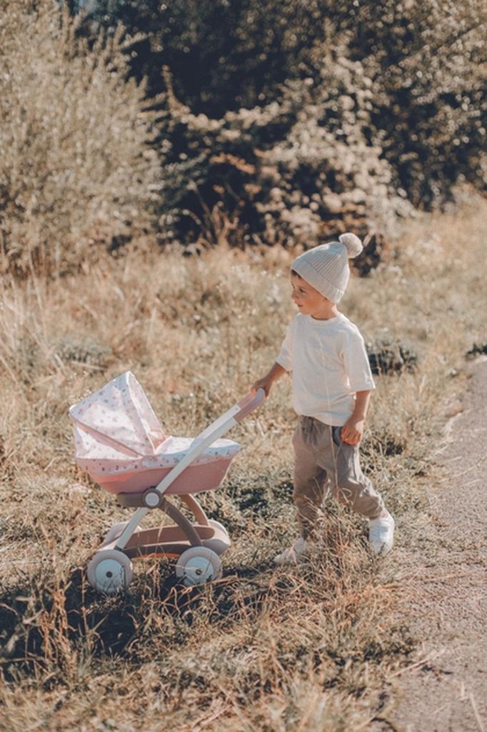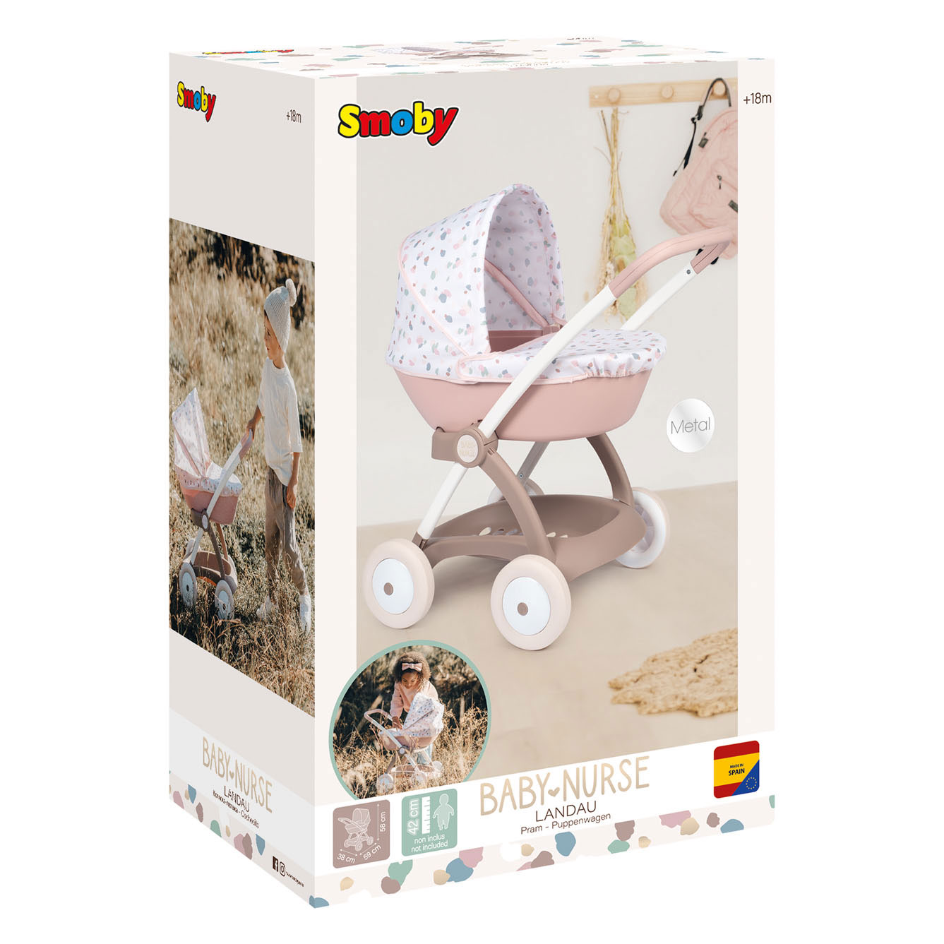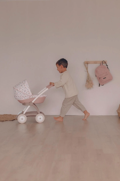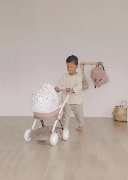 Baby Nurse serisinden Smoby bebek arabasının rahat kulpları vardır