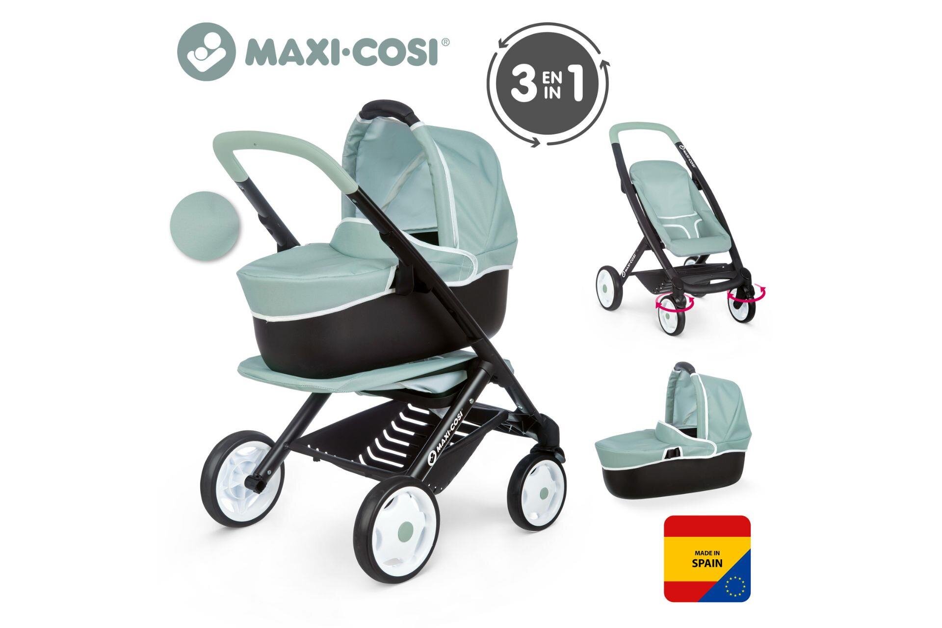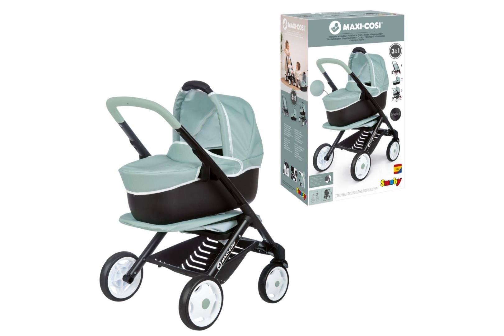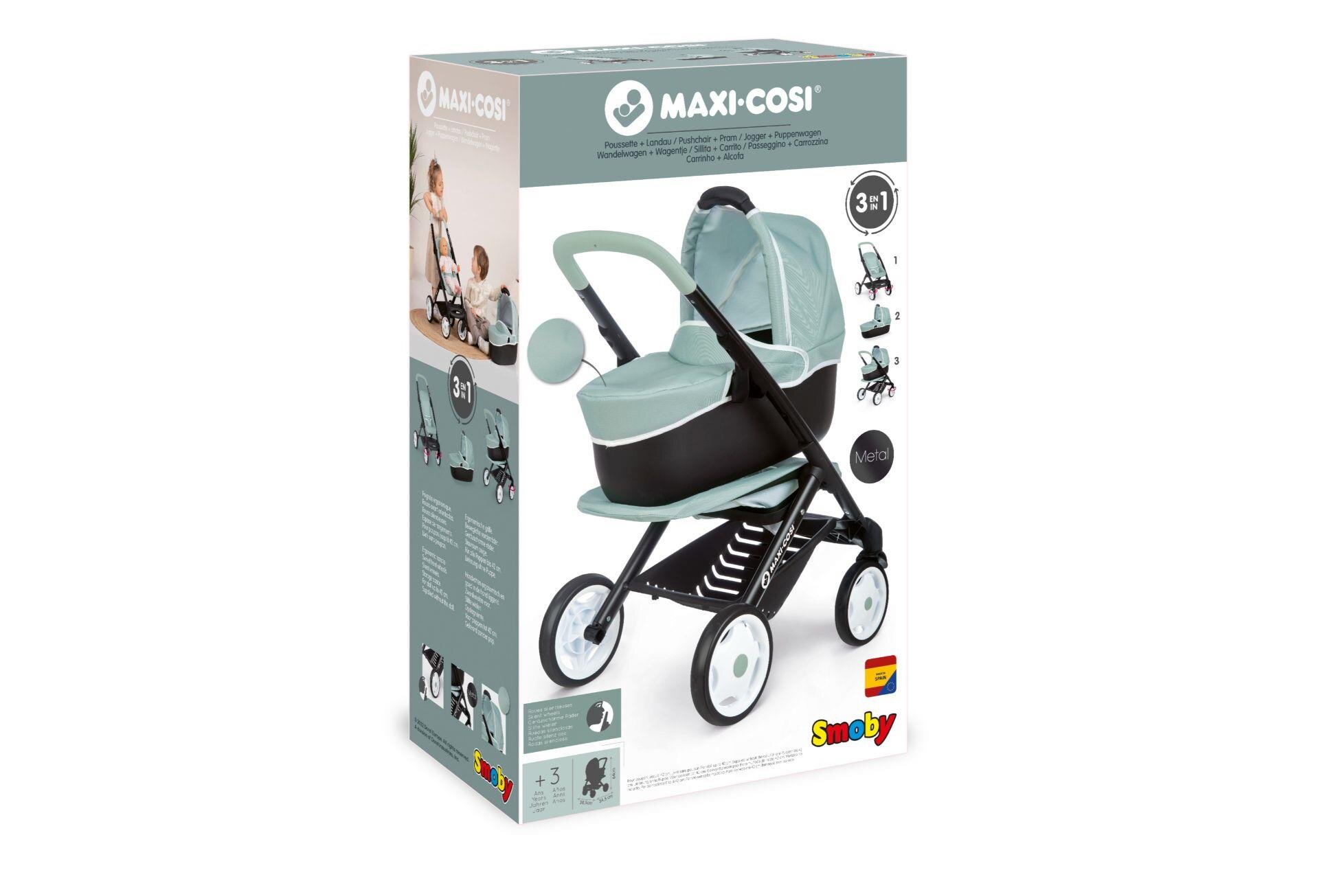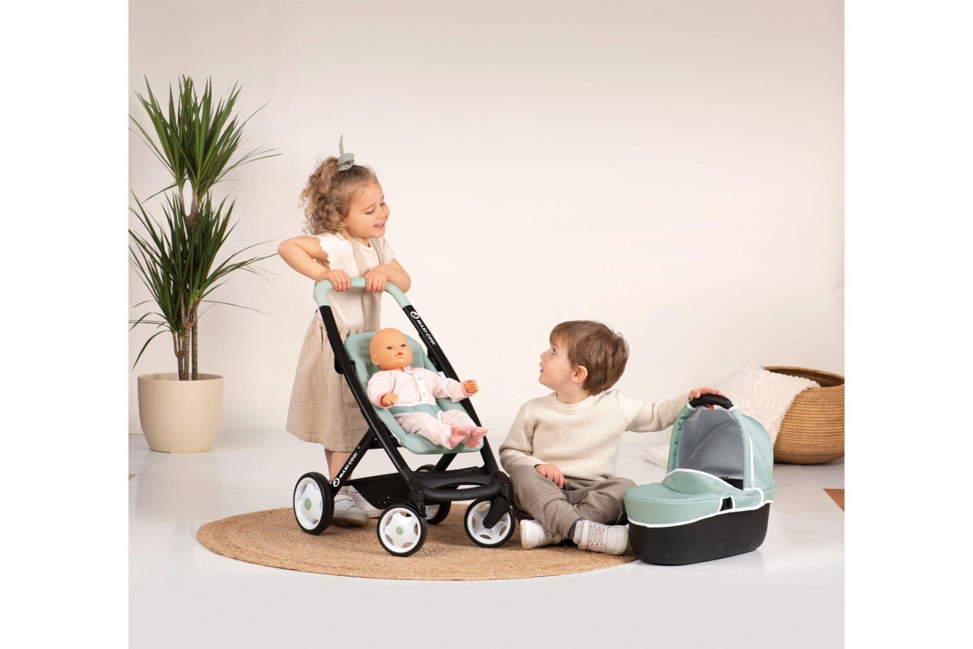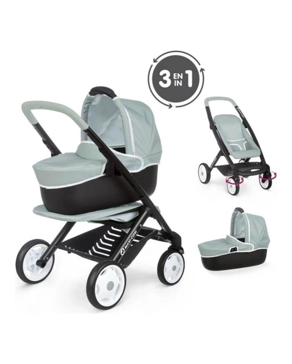 Smoby Maxi-Cosi lisanslı bu 3’ü 1 arada oyuncak bebek arabası, çocukların rol yapma oyunlarını bir üst seviyeye taşıyor.