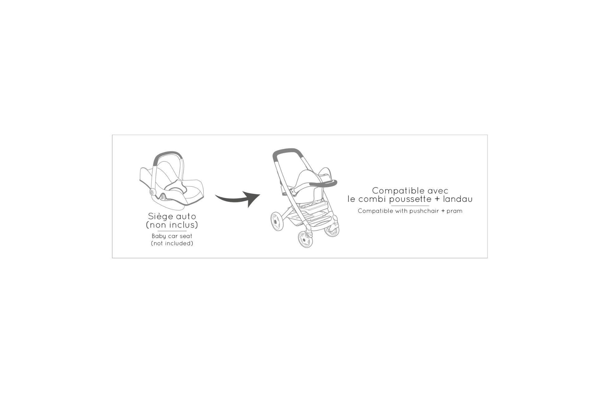 42 cm'e kadar olan oyuncak bebekler için uygundur.(Oyuncak bebek dahil değildir.)