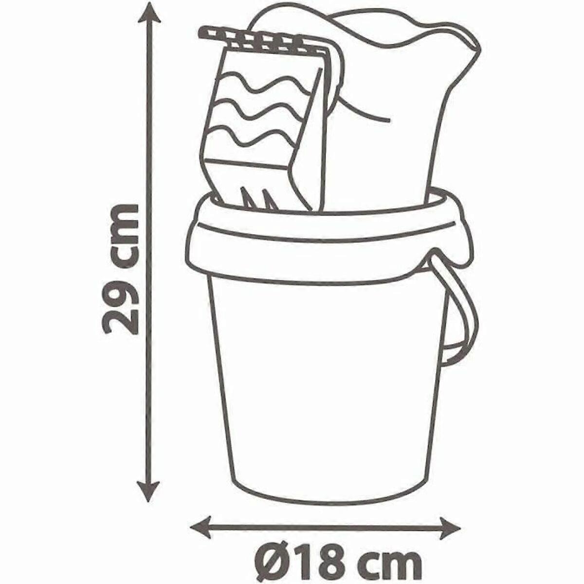 6 eğlenceli parça: kova, kürek, kalıp ve diğer aksesuarları vardır.