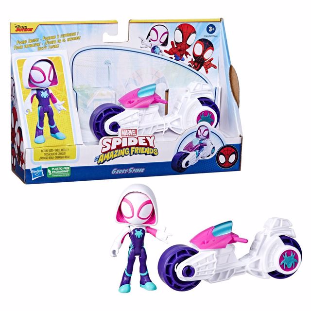 Spider And Hıs Amazıng Frıends oyuncağı, aksiyon dolu oyunlar için bir Ghost-Spider figürü ve bir oyuncak motosikletle birlikte gelir.