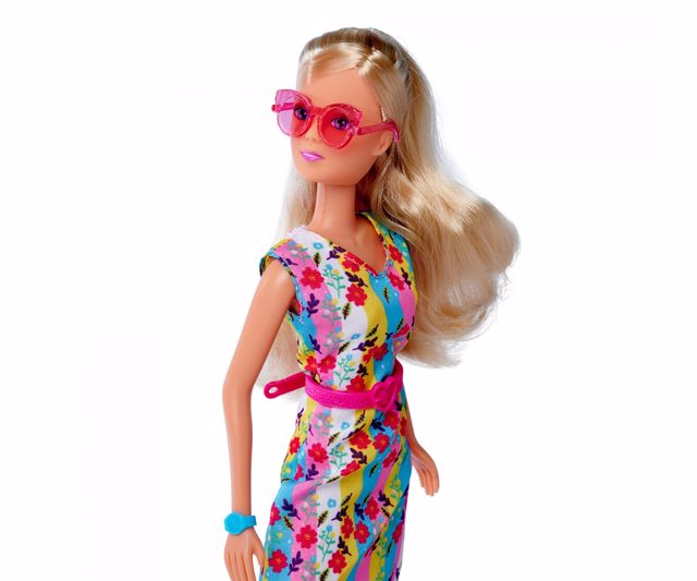 Steffi geziye gidiyor ve güneş gözlüklü uzun renkli bir