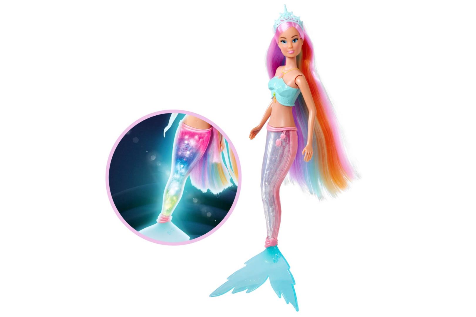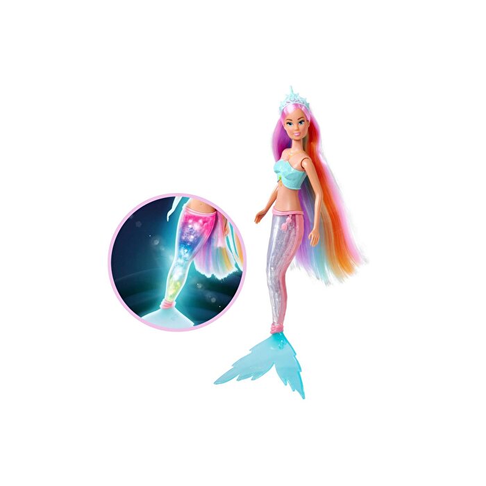 Simba’dan şimdi de sihirli denizkızı Steffi Love Gökkuşağı Bebeği, Steffi'nin kolyesindeki bir düğmeye dokunulduğunda, yüzgeci sihirli gökkuşağı renklerinde yanar.