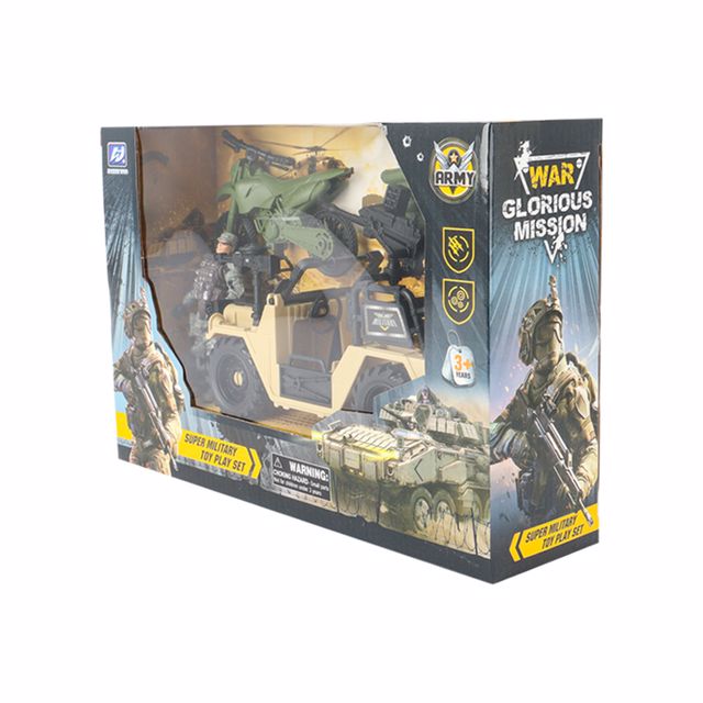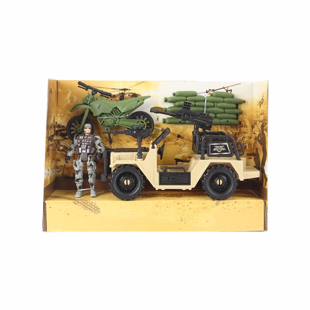 Gerçekçi görünüme sahip zırhlı araç ve safari jipinin üzerine askeri figürleri yerleştirin ve eğlence dolu oyuna başlayın.
