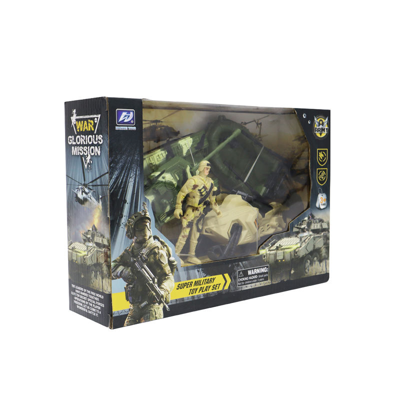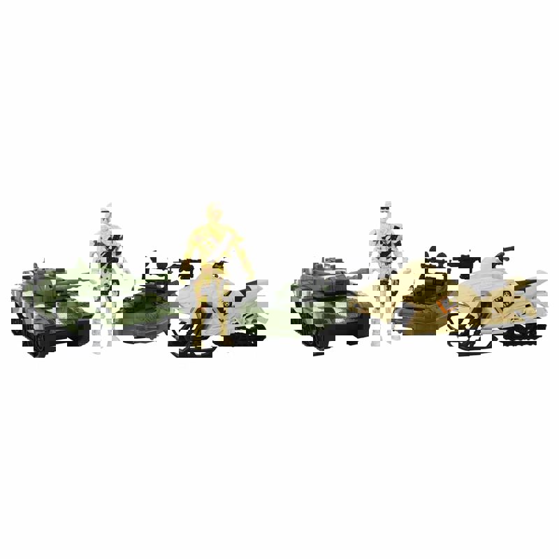Gerçekçi görünüme sahip zırhlı araç ve safari jipinin üzerine askeri figürleri yerleştirin ve eğlence dolu oyuna başlayın.