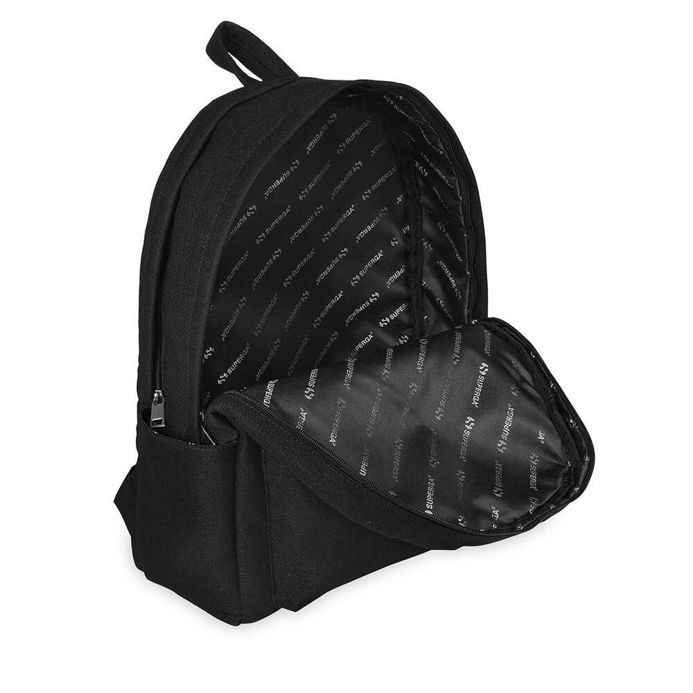 İki bölmeye ve fermuarlı bir ön cebe sahiptir. Geniş iç
