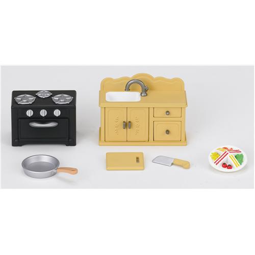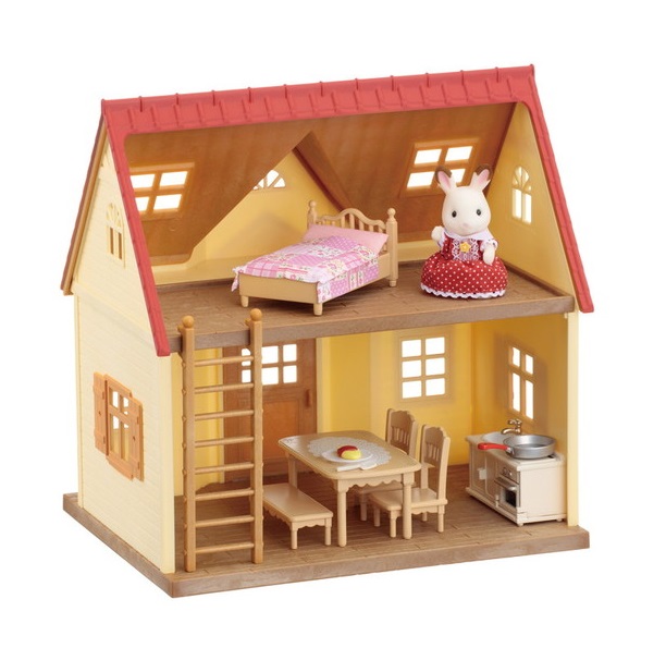 Ev seti masa, 2 adet sandalye, mutfak, bıçak, yatak ve merdivenden oluşmaktadır.