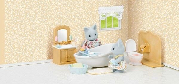 Ürün içinde anne kedi,tuvalet,tuvalet kağıdı,banyo,sabun,fırça,su oyuncakları,banyo paspası,sepet,havlu,aynalı dolap,musluk ve diş fırçası bulunmaktadır.