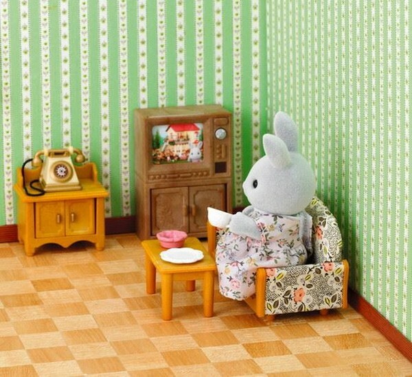 Ürün içinde anne tavşan,kanepe,dergi rafı,masa,kahve kupaları,dolap,telefon ve televizyon bulunmaktadır.
