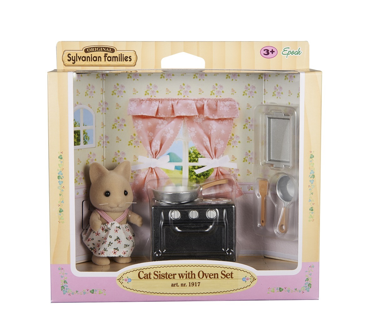 Sylvanian ailesinin içinde 1 adet kedi kardeş figürü,fırın,kaşık,tava,tepsi ve kova bulunmaktadır.