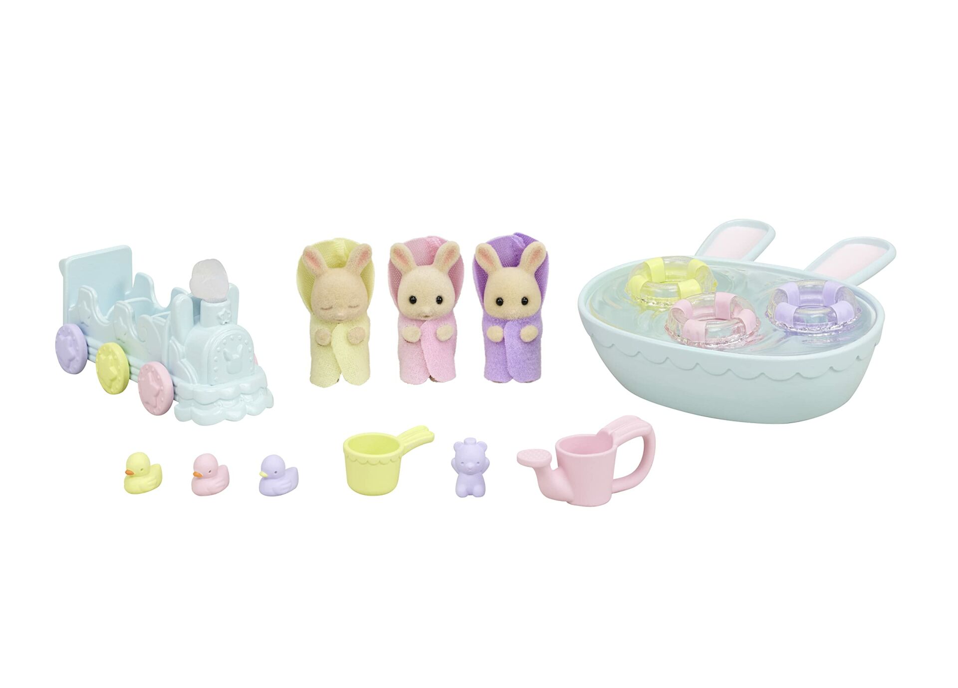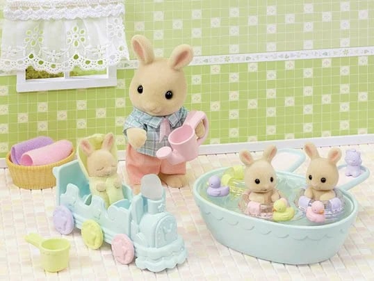Üçüz bebeklerin banyo seti ile tavşan üçüzler eğlence bir banyo zamanı için istedikleri her şeye sahipler!