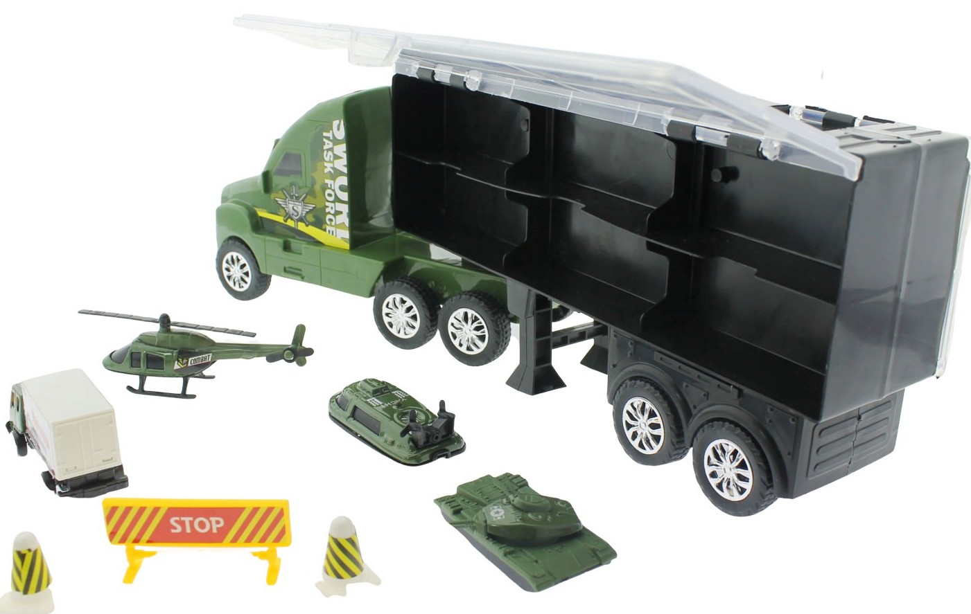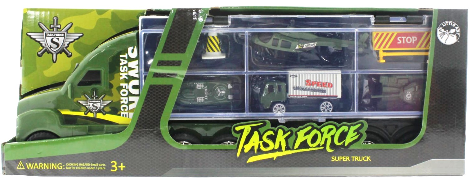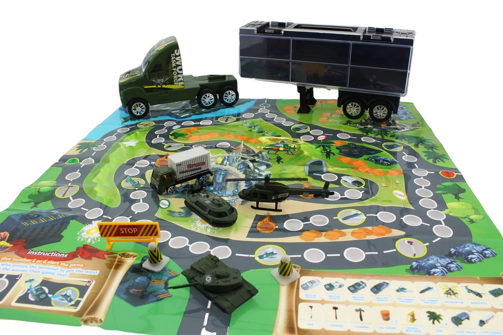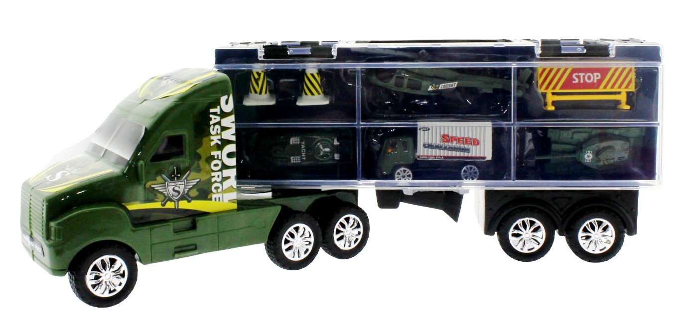 Çocuğunuz bu kamyonu üst kısmındaki aparat sayesinde, diğer araçları taşımak için bir taşıma çantası olarak kullanabilir ve oyun setini dilediği yere taşıyabilir.
