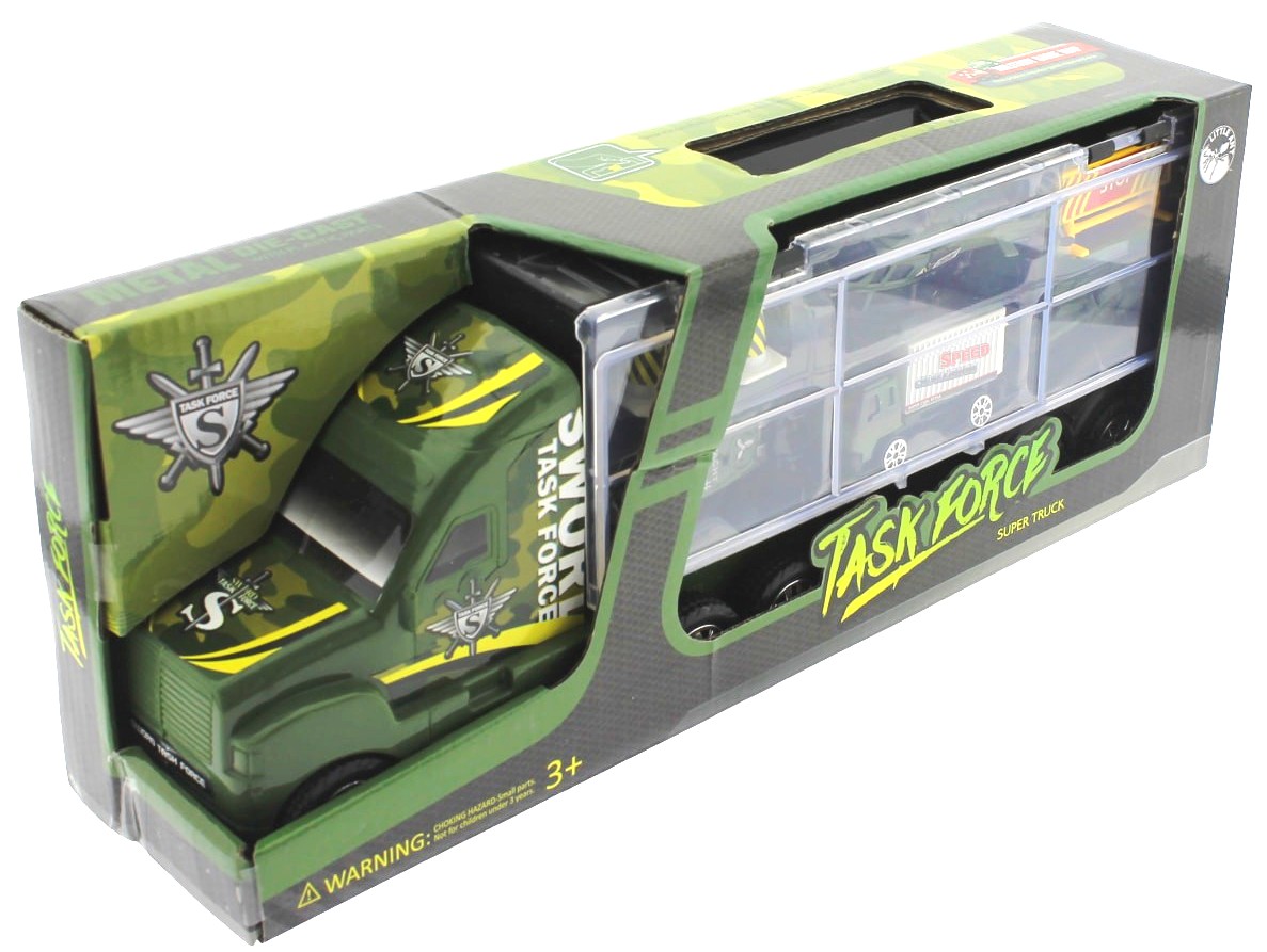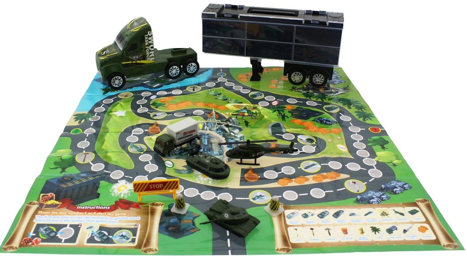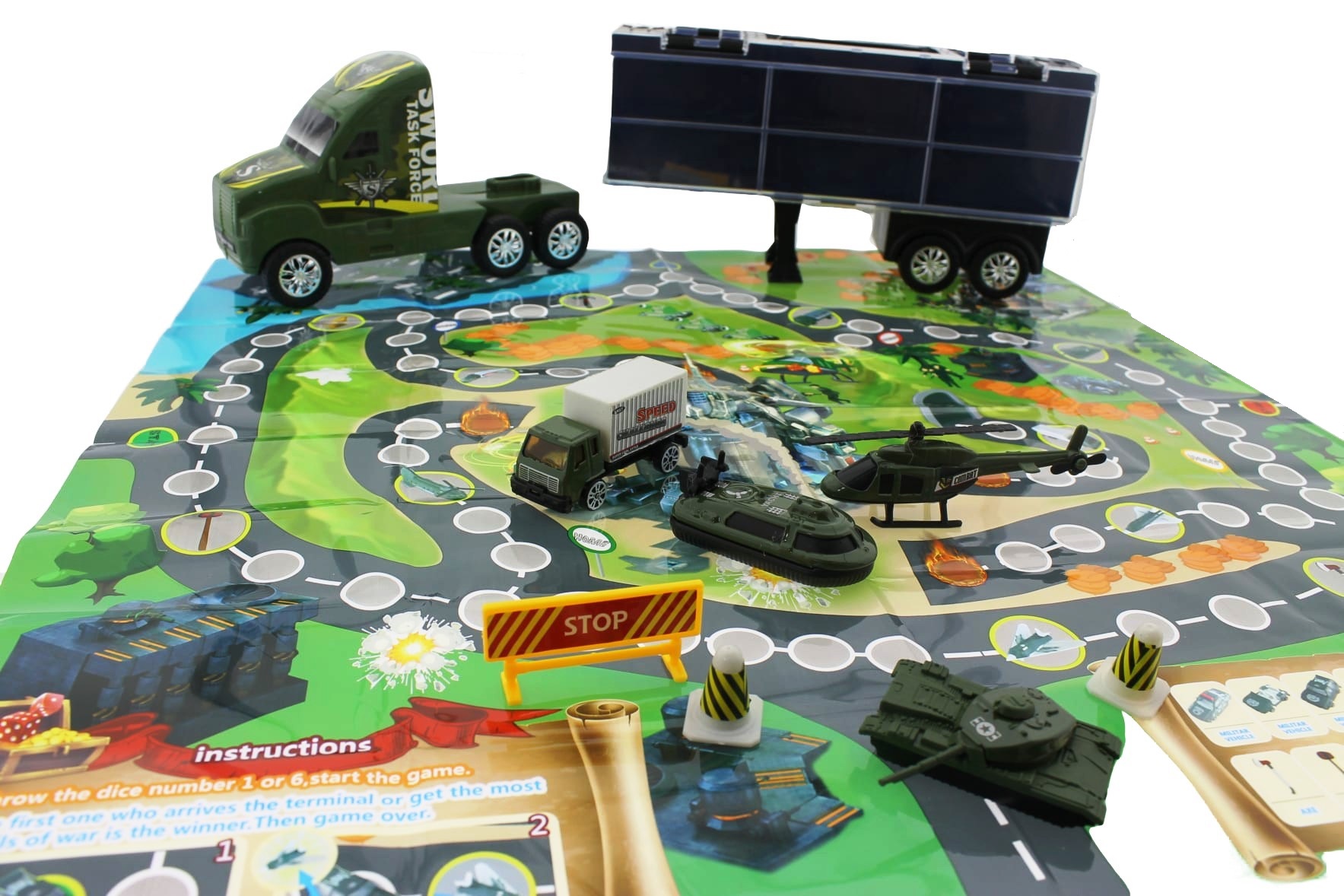 Çocuğunuz bu kamyonu üst kısmındaki aparat sayesinde, diğer araçları taşımak için bir taşıma çantası olarak kullanabilir ve oyun setini dilediği yere taşıyabilir.