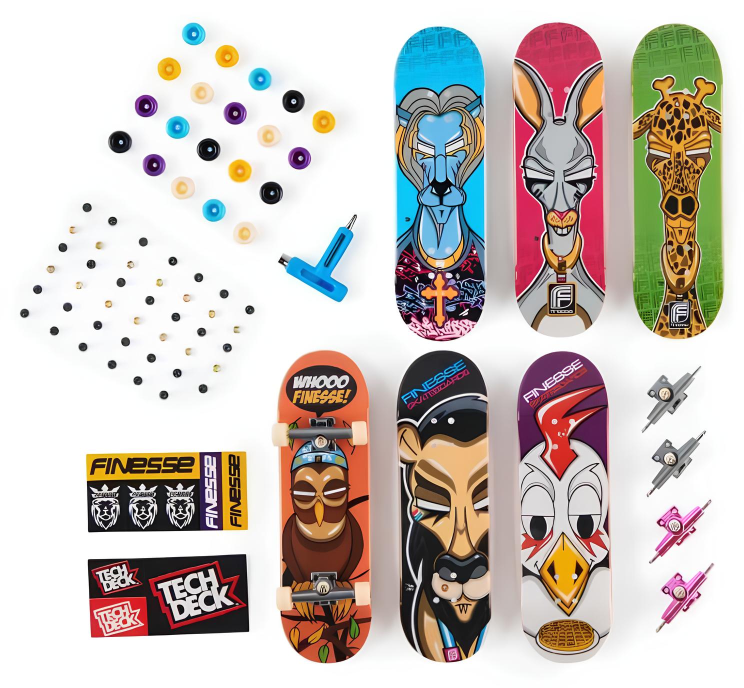Oyuncak paketindeki her kaykay tahtası, Blind, Baker, Primitive, Element, Finesse, Santa Cruz, Plan B, Sk8mafia ve Toy Machine gibi dünyanın en büyük kaykay şirketlerinden bazılarının orijinal grafiklerini içerir.