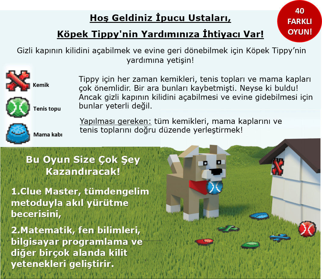 Clue Master, tümdengelimle akıl yürütme becerisini, matematik, fen bilimleri, bilgisayar programlama ve diğer birçok alanda kilit yetenekleri geliştiren